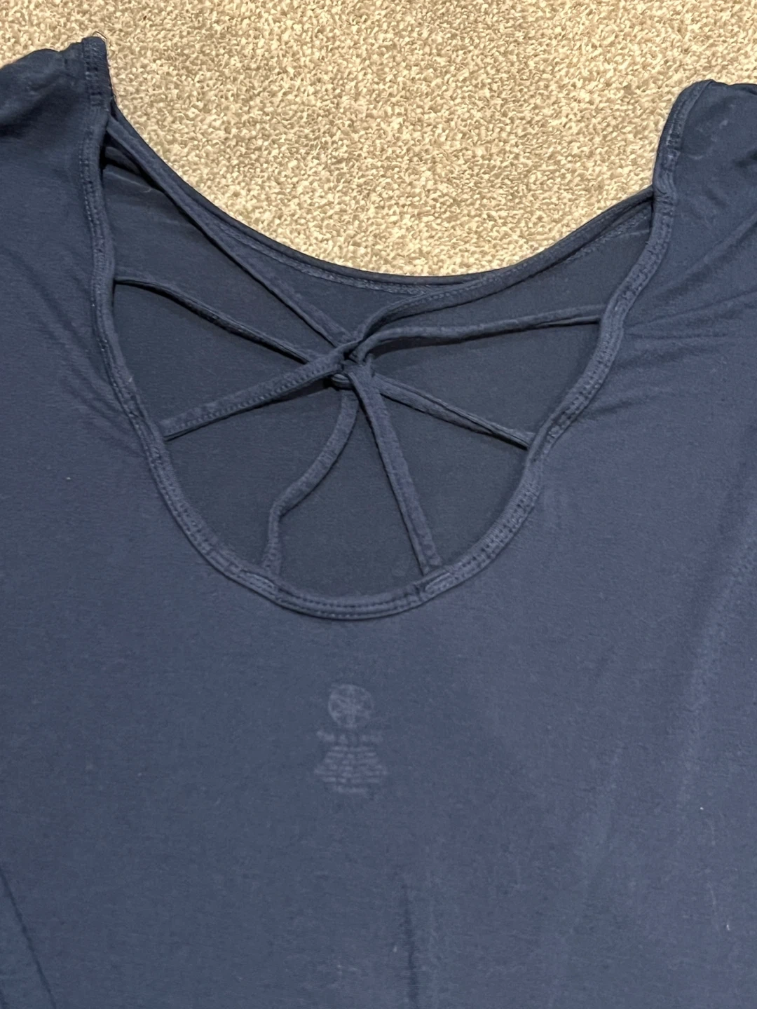 Selling a Gaiam long sleeve top in a lovely blue colour. It's a size medium and features a unique criss-cross design on the back. Perfect for yoga or casual wear!