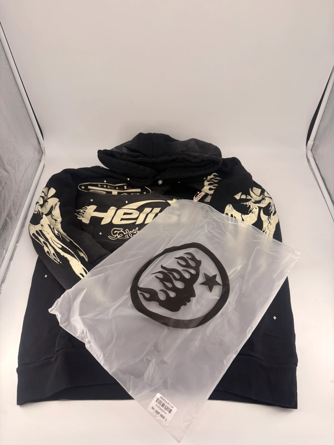 Selling a Hellstar 'Faith to Paradise' hoodie in black. It features a unique design with the brand's logo and graphics on the front and back. Comes with the original tag and packaging! NFC scans!!!