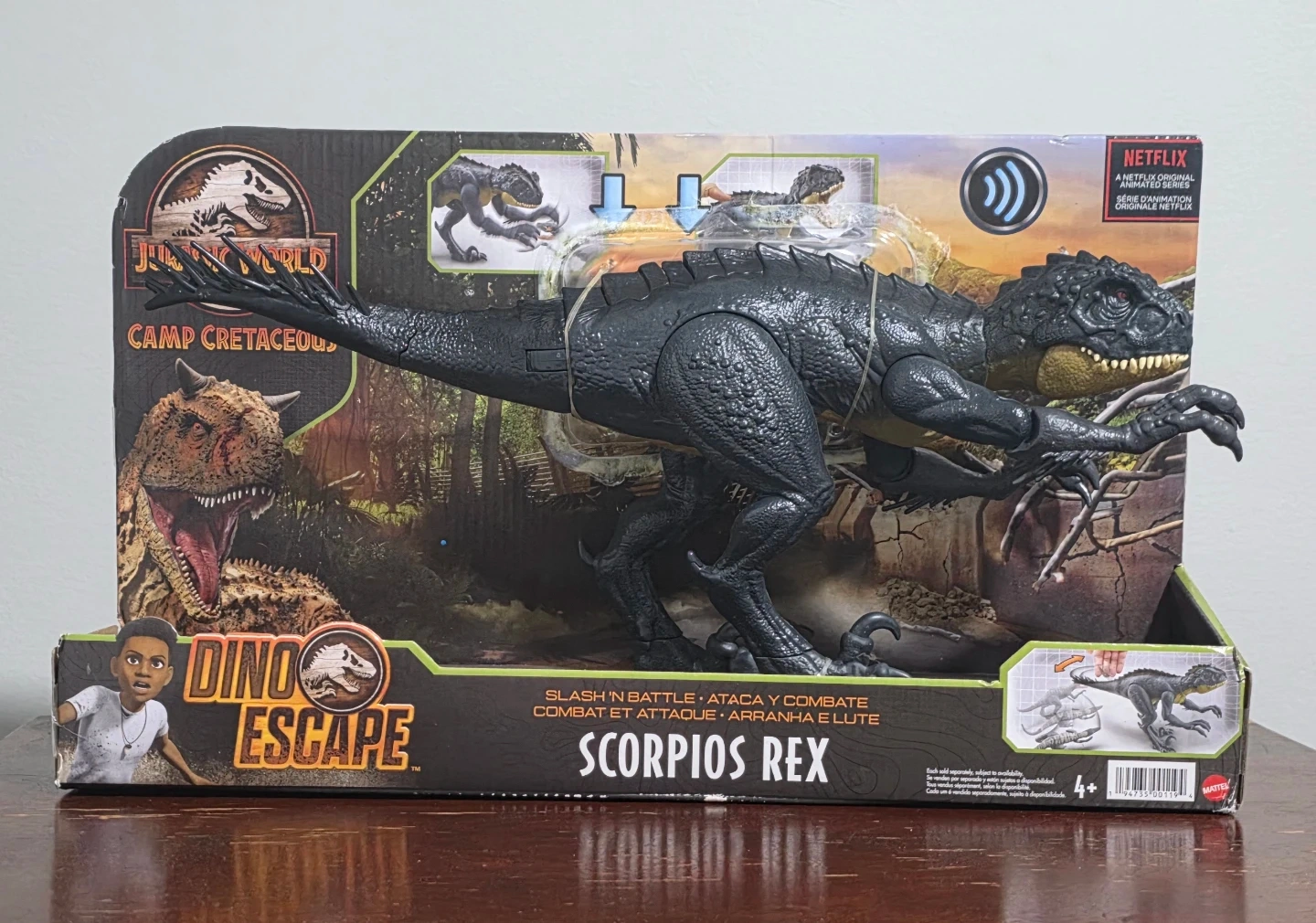 Selling a brand new Jurassic World Camp Cretaceous Dino Escape Scorpios Rex! It's still in the box and ready for some roaring action. Slash in battle, attack, and combat with tail strike action!