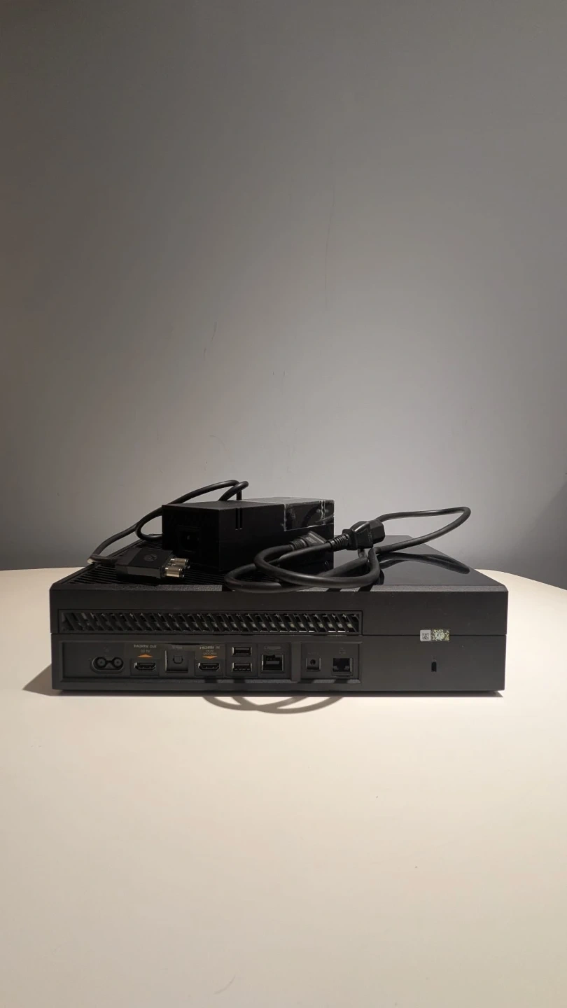 Xbox One console. It comes with the power adapter but no controller. The console is in used condition, but still works great! The original box is included.