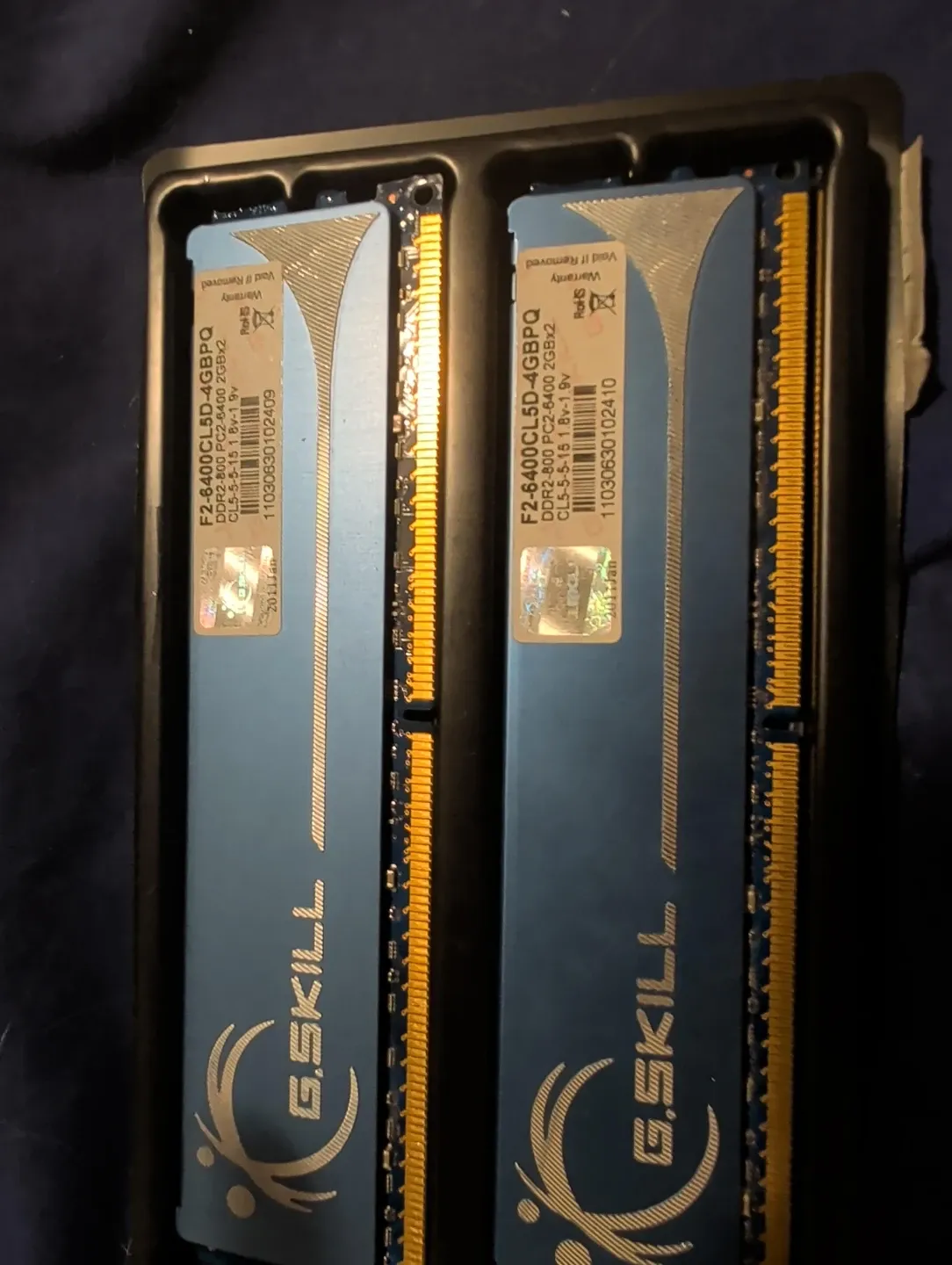 Selling a G.Skill DDR2 RAM kit, perfect for upgrading an older PC! This kit includes two 2GB sticks, for a total of 4GB of memory.