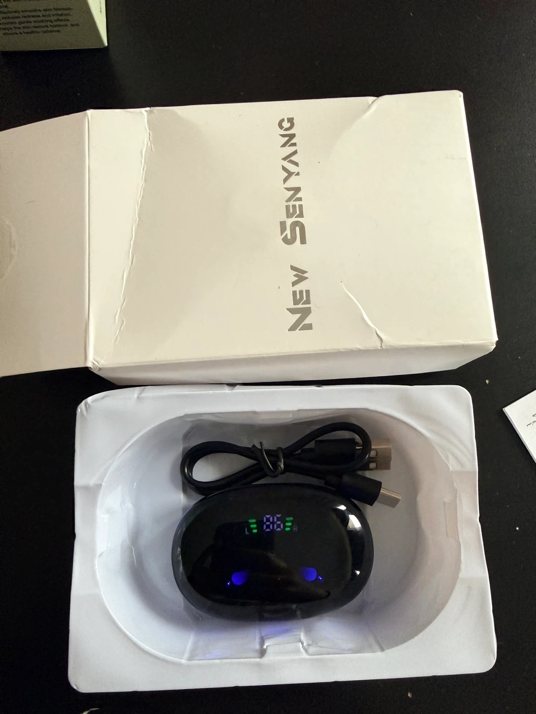 Selling a pair of New Senyang wireless earbuds in black! Comes with the original box and charging cable. These earbuds are lightweight and portable, perfect for on the go