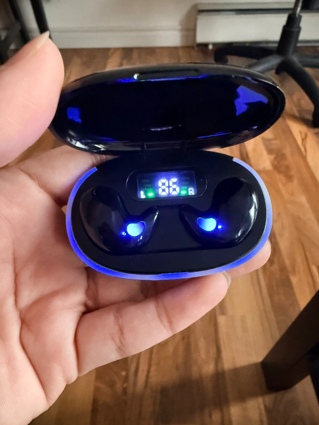 Selling a pair of New Senyang wireless earbuds in black! Comes with the original box and charging cable. These earbuds are lightweight and portable, perfect for on the go
