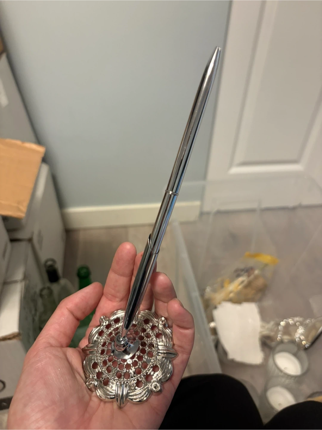Silver Pen with Decorative Stand