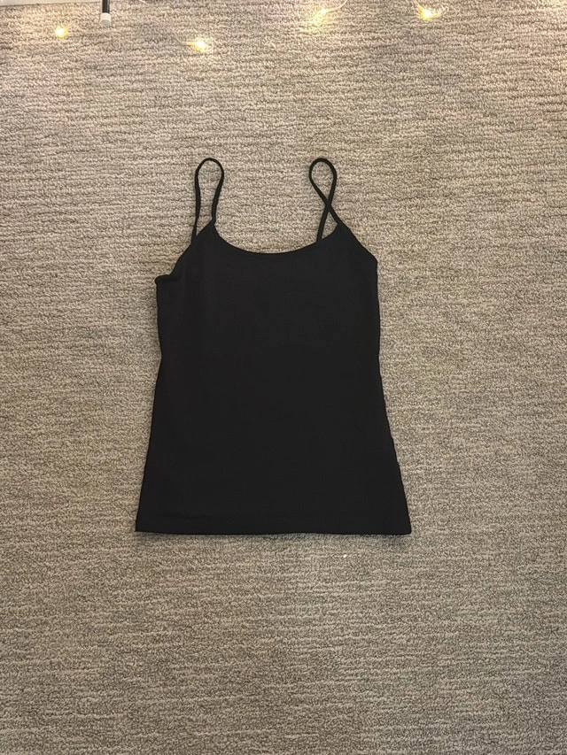 This is a used black tank top, perfect for layering or wearing on its own during warmer weather. Its simple design and comfortable fit make it a versatile addition to any wardrobe. Considering this tank top is in good condition, I've priced it competitively. If the ad is up, the tank top is available.