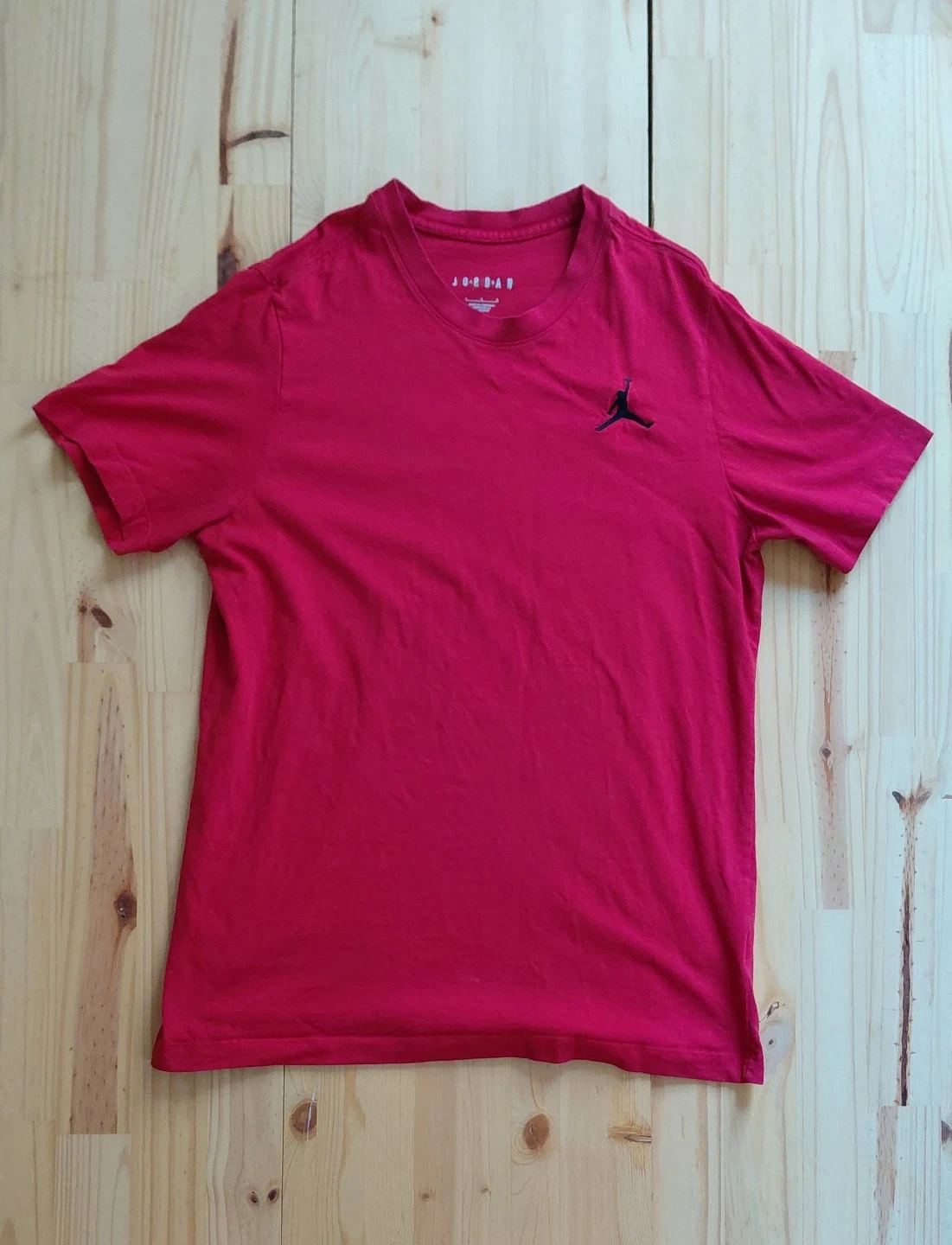 Selling a red Jordan t-shirt! It features the classic Jumpman logo. Great for casual wear or sports activities