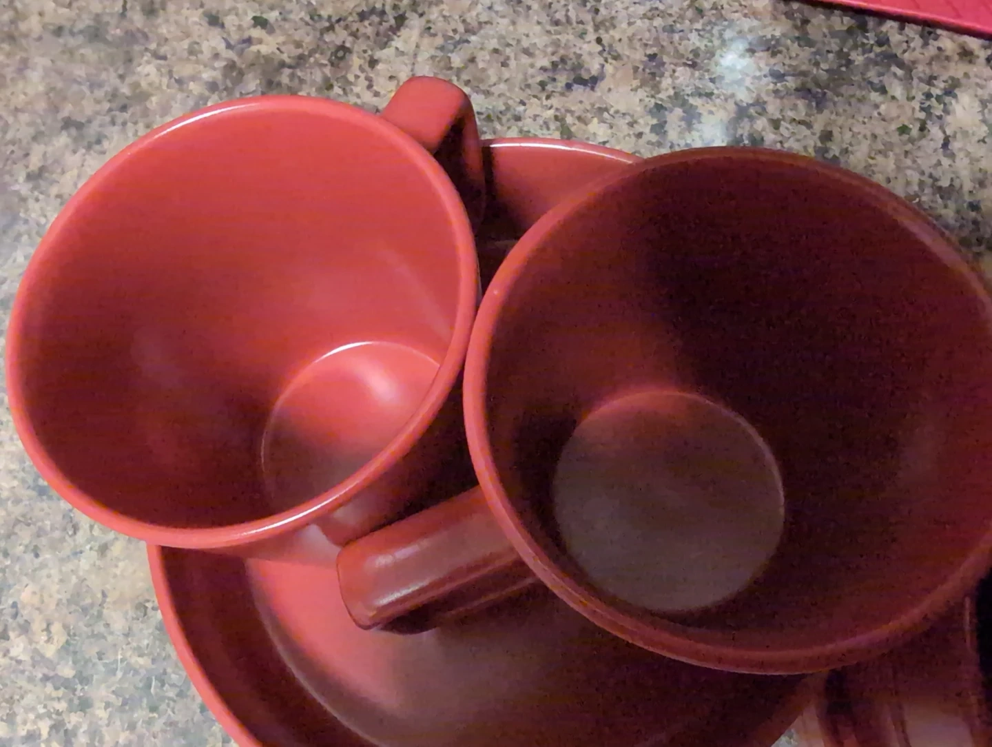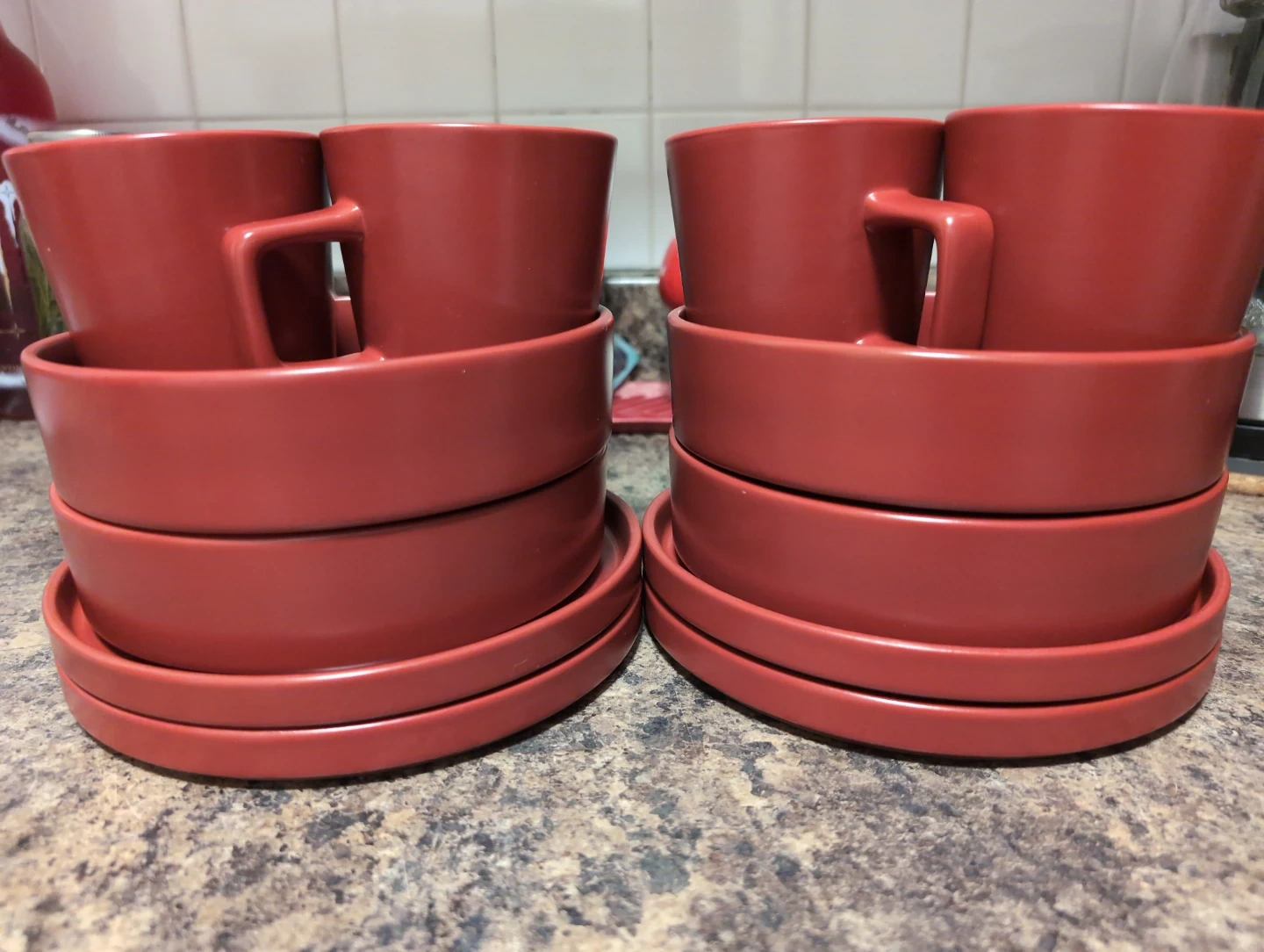 A beautiful and great quality gently used Stone + Llain stoneware 12 pc dinner set in a lovely Cleo red colour!