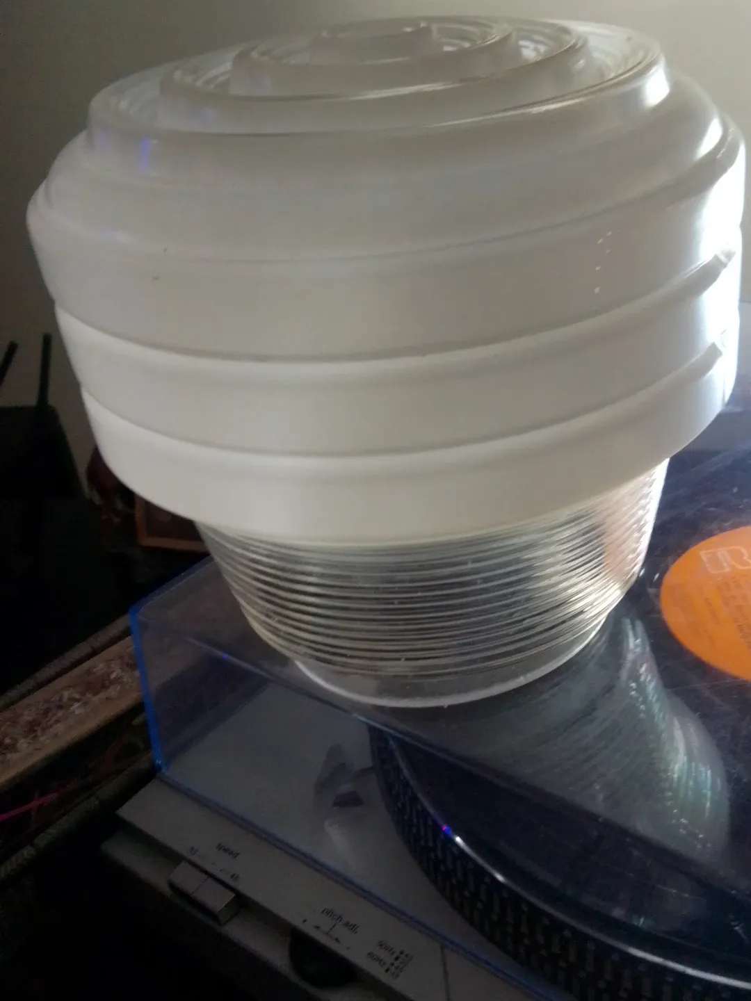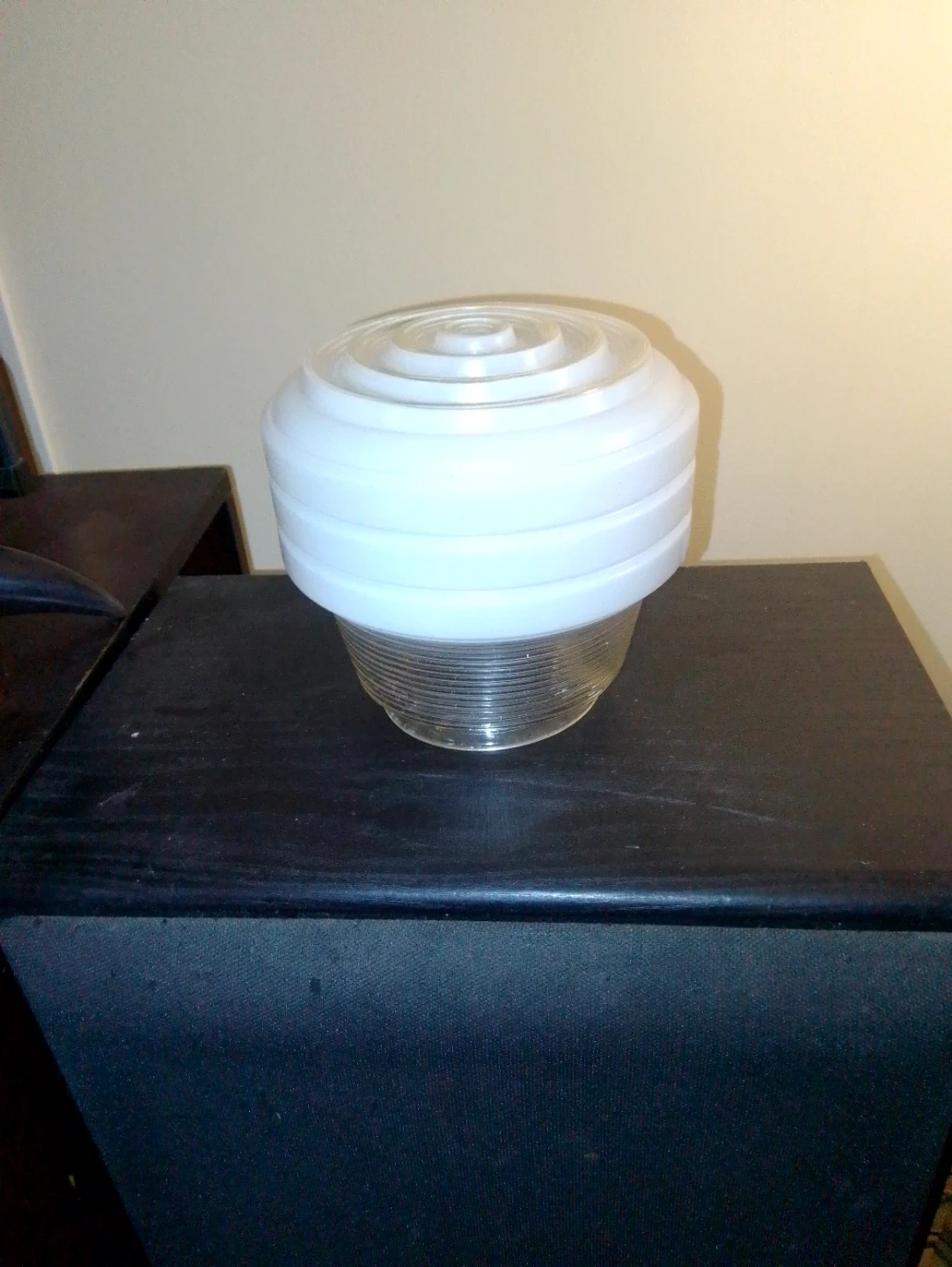 Selling a vintage white glass ribbed ceiling light globe It's in great condition and would add a touch of retro charm to any room. Would make a unique lamp shade.