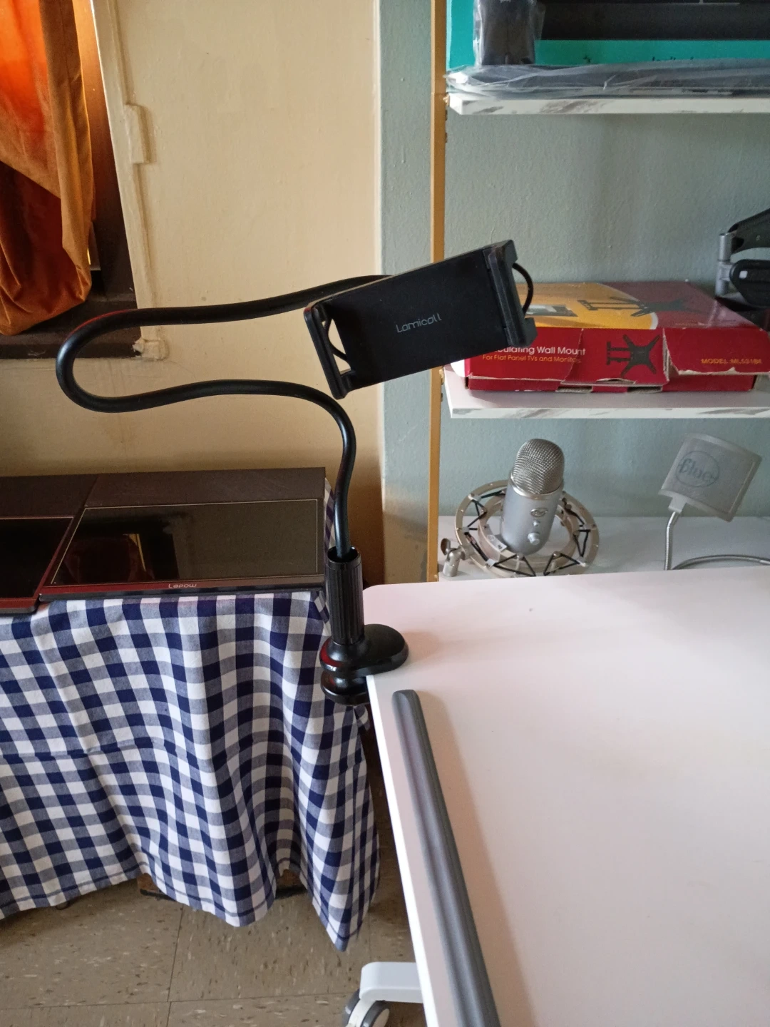 Selling a Lamicall flexible tablet and phone holder. It's in great condition and perfect for hands-free use while working, watching videos, or video chatting. It's easy to adjust to the perfect angle and height, and the sturdy base keeps it stable on any surface