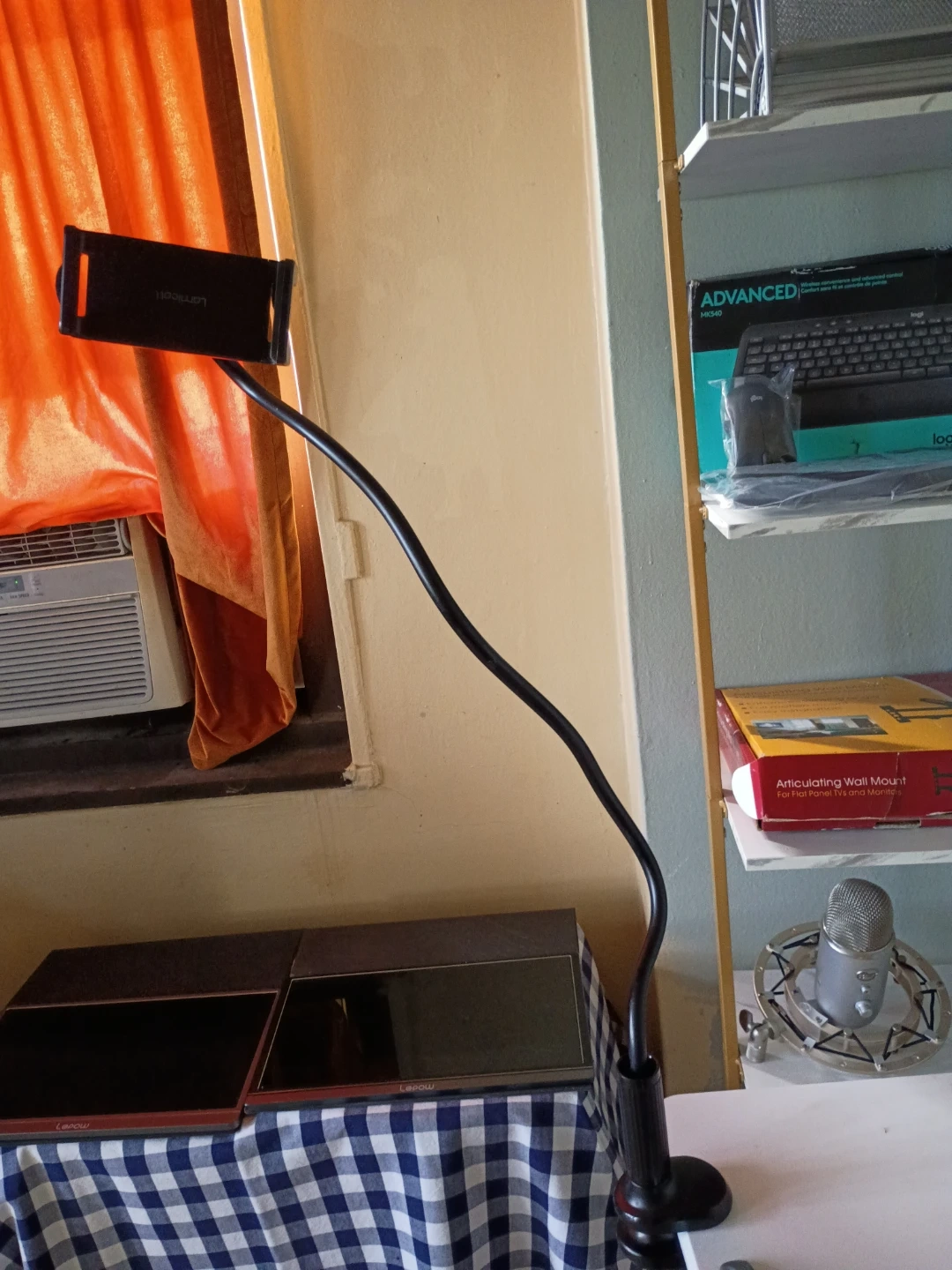 Selling a Lamicall flexible tablet and phone holder. It's in great condition and perfect for hands-free use while working, watching videos, or video chatting. It's easy to adjust to the perfect angle and height, and the sturdy base keeps it stable on any surface
