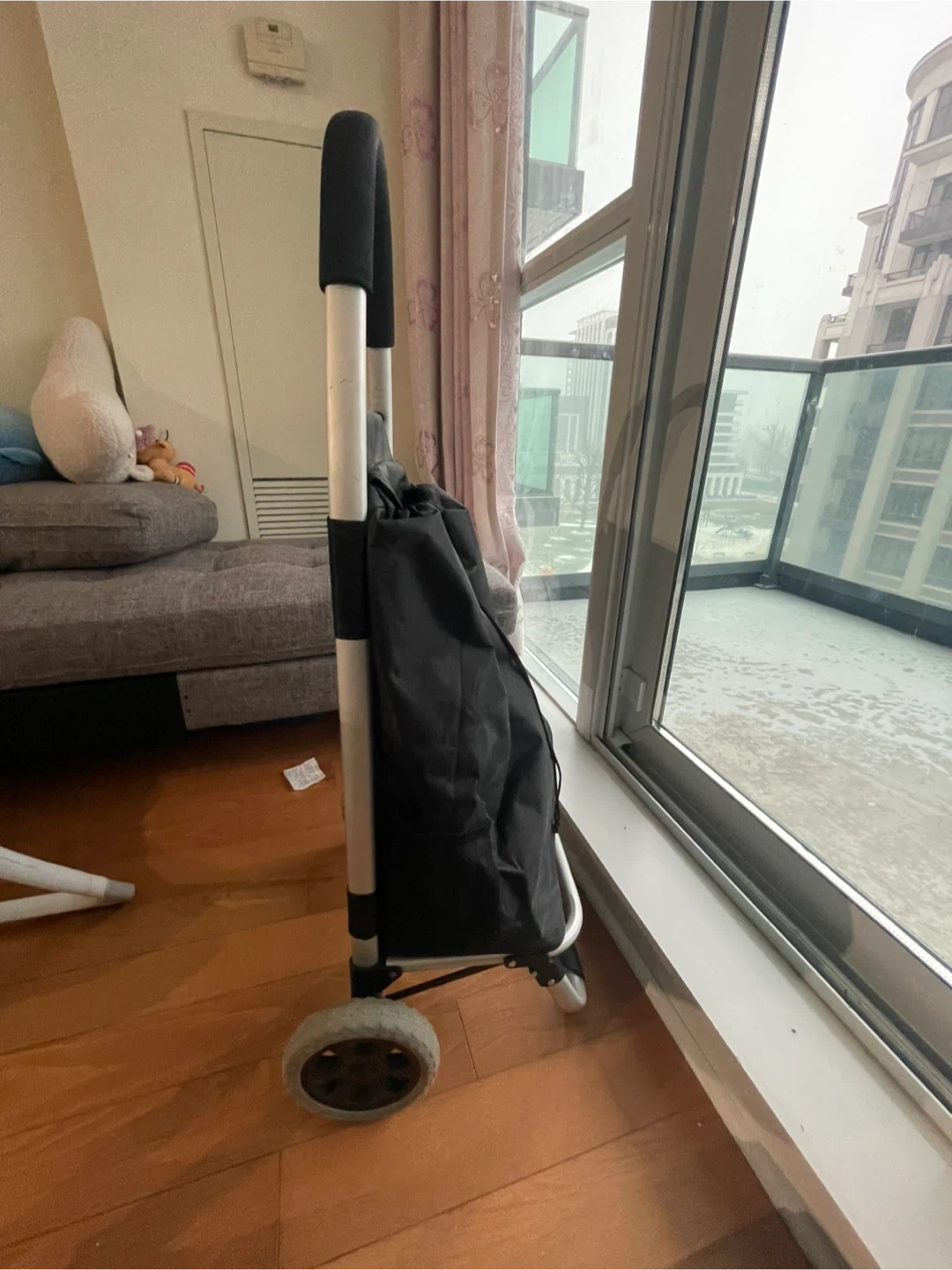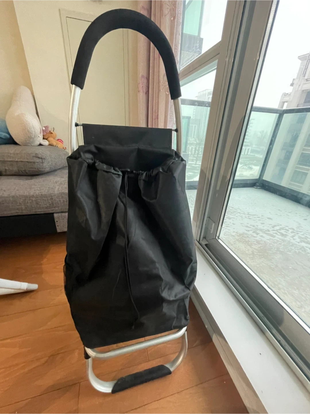Selling a black shopping cart with wheels. It's in good condition and ready to help you with your grocery runs or trips to the market! It's lightweight and easy to maneuver, making shopping a breeze
