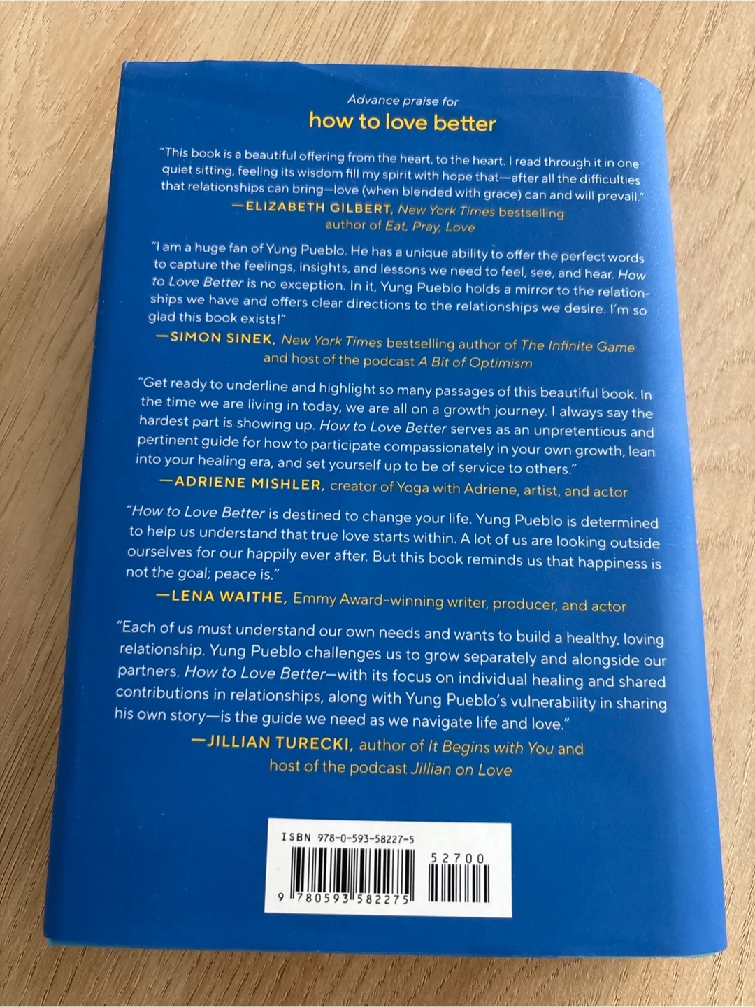 Selling a hard cover copy of "How to Love Better" by Yung Pueblo. It's a path to deepen your compassion, kindness, and gratitude so you can truly grow in harmony with another person and build stronger connections in all of your relationships. Great read for anyone looking to improve their relationships!