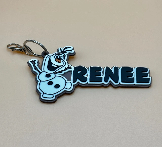Custom made name Olaf Frozen Disney keychain. Made to order. Choose from 3 different styles of keychain rings (see all the pictures). Contact me if you have other character or font in your mind that you want to use. Local pick up/drop off is available in Whitby, ON. Please follow us on Instagram @umami3dprints