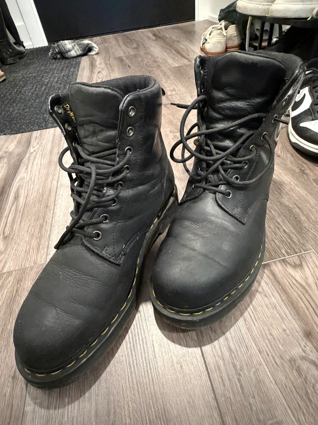 Selling a pair of Dr. Martens boots in black leather. They're in good condition and ready for a new owner! They have that classic Dr. Martens look and feel.