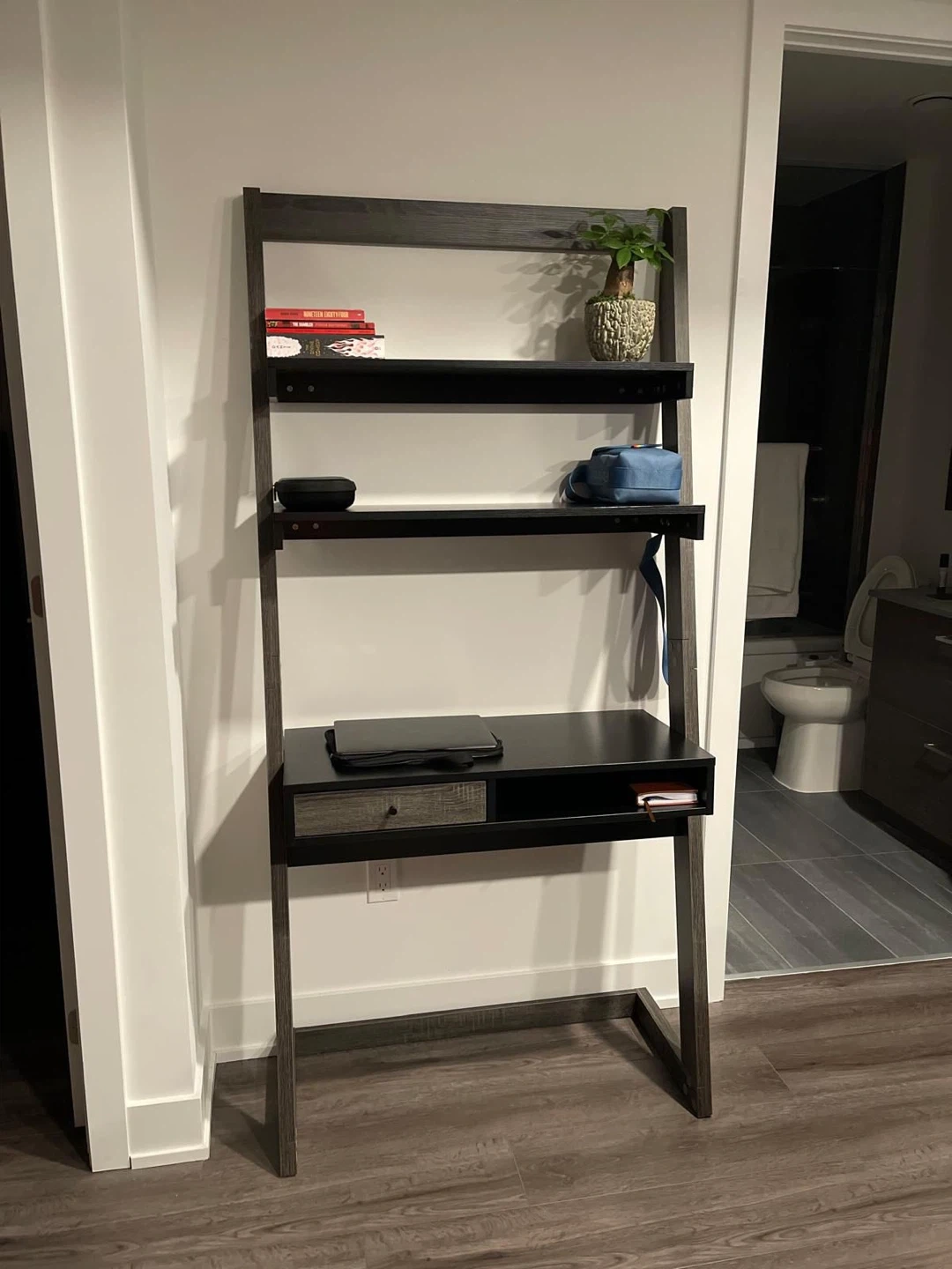 Selling a ladder shelf desk, perfect for a home office setup! It features multiple shelves for storage and a built-in desk surface. Great for small spaces or anyone looking for a stylish and functional workspace.
