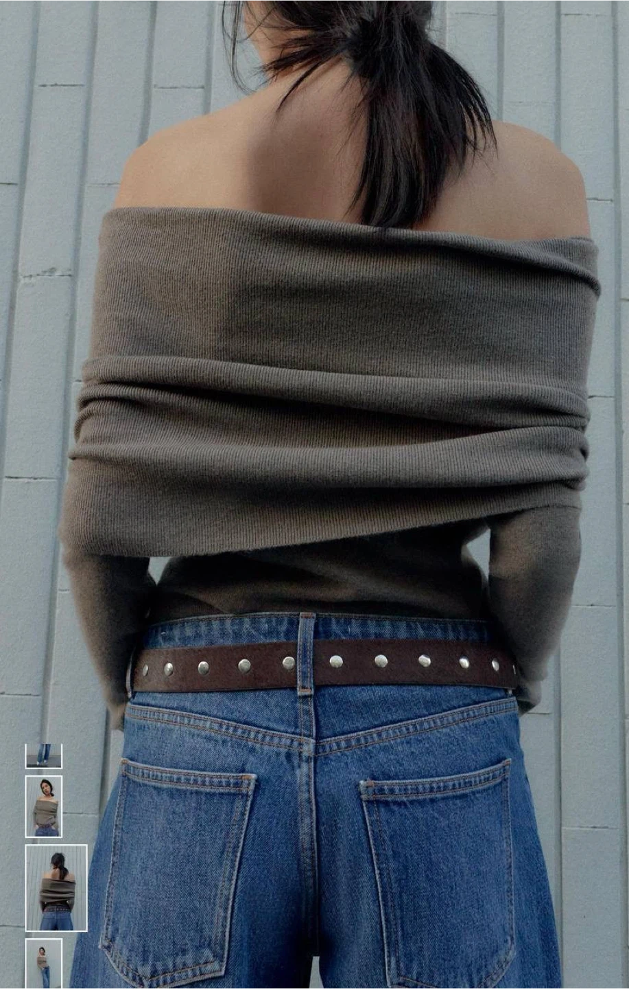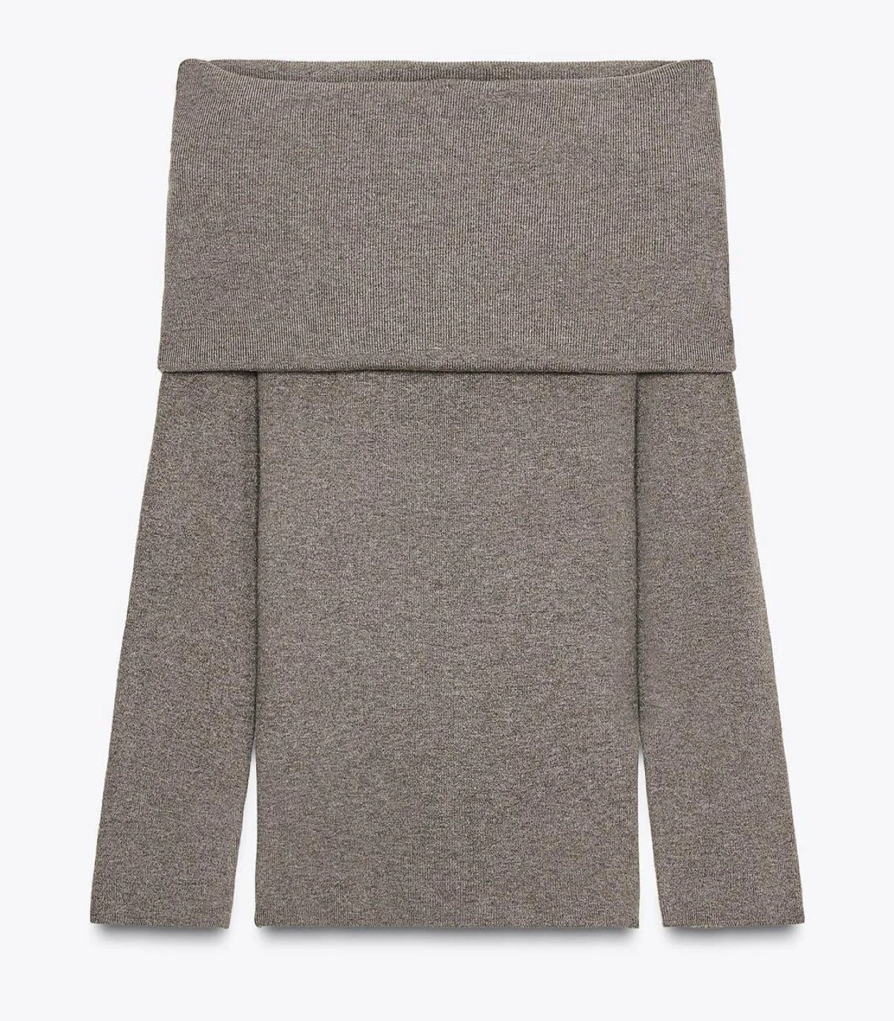 Selling a Zara knit off-the-shoulder top in a neutral colour! This top is perfect for a stylish, casual look.