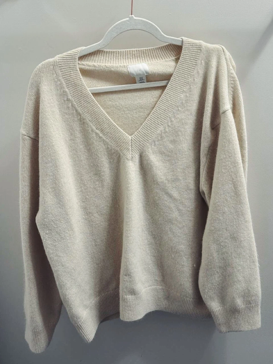 Oversized sweater in a soft knit. V-neck, dropped shoulders, and long sleeves. Ribbing at neckline, cuffs, and hem.