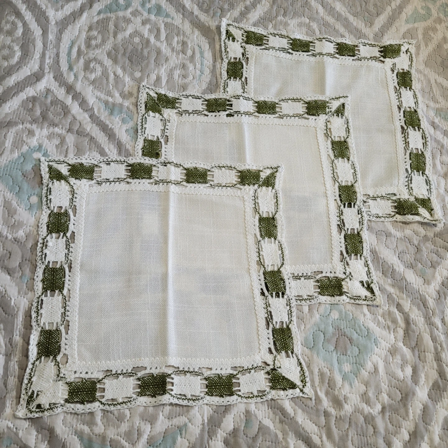 Set of 3 Beautiful Vintage Handmade 15" x 15" Doilies..