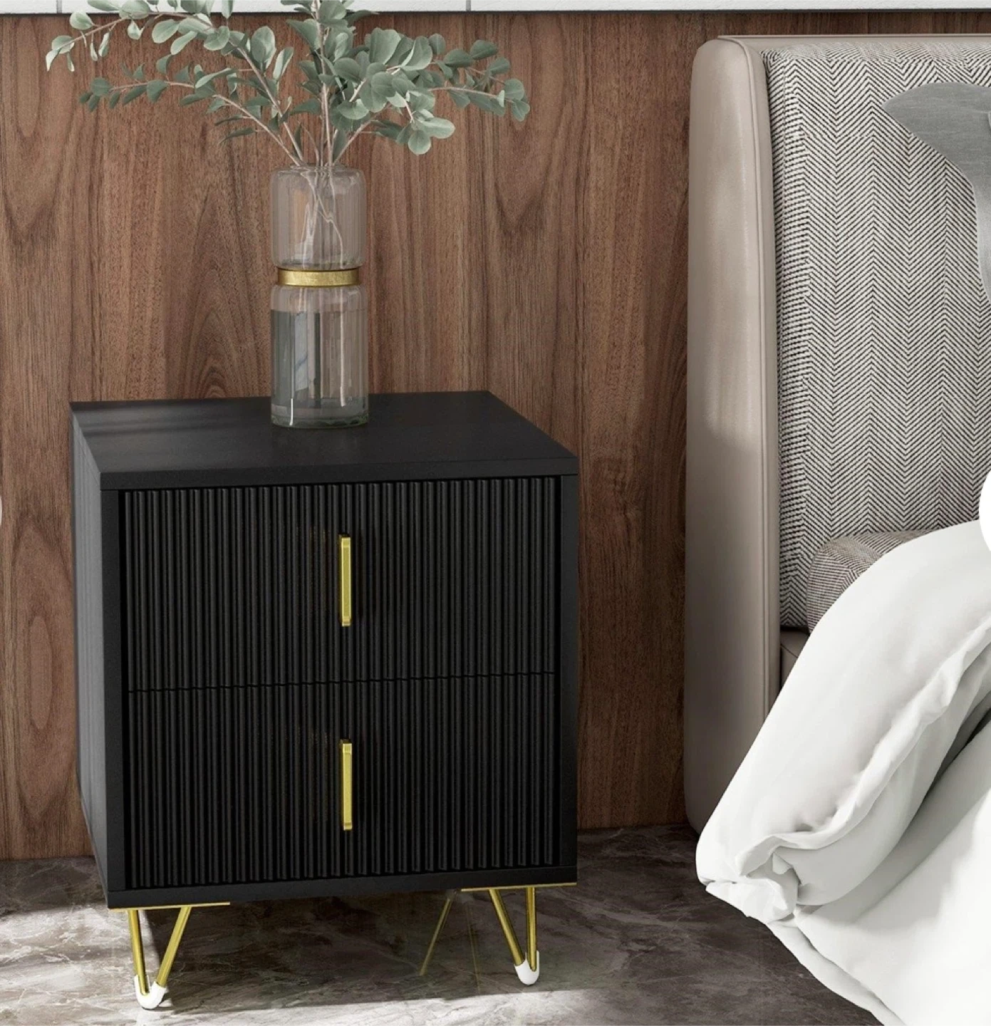 This is a new, pre-assembled HOMCOM black nightstand, featuring two drawers and stylish gold legs. I'm selling a HOMCOM nightstand with a sleek black finish and gold legs that would look great in a bedroom or living space. Since it's already assembled, it saves you the hassle of putting it together yourself!