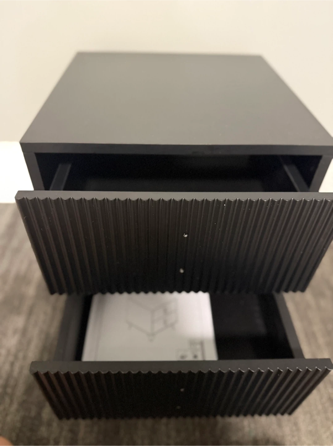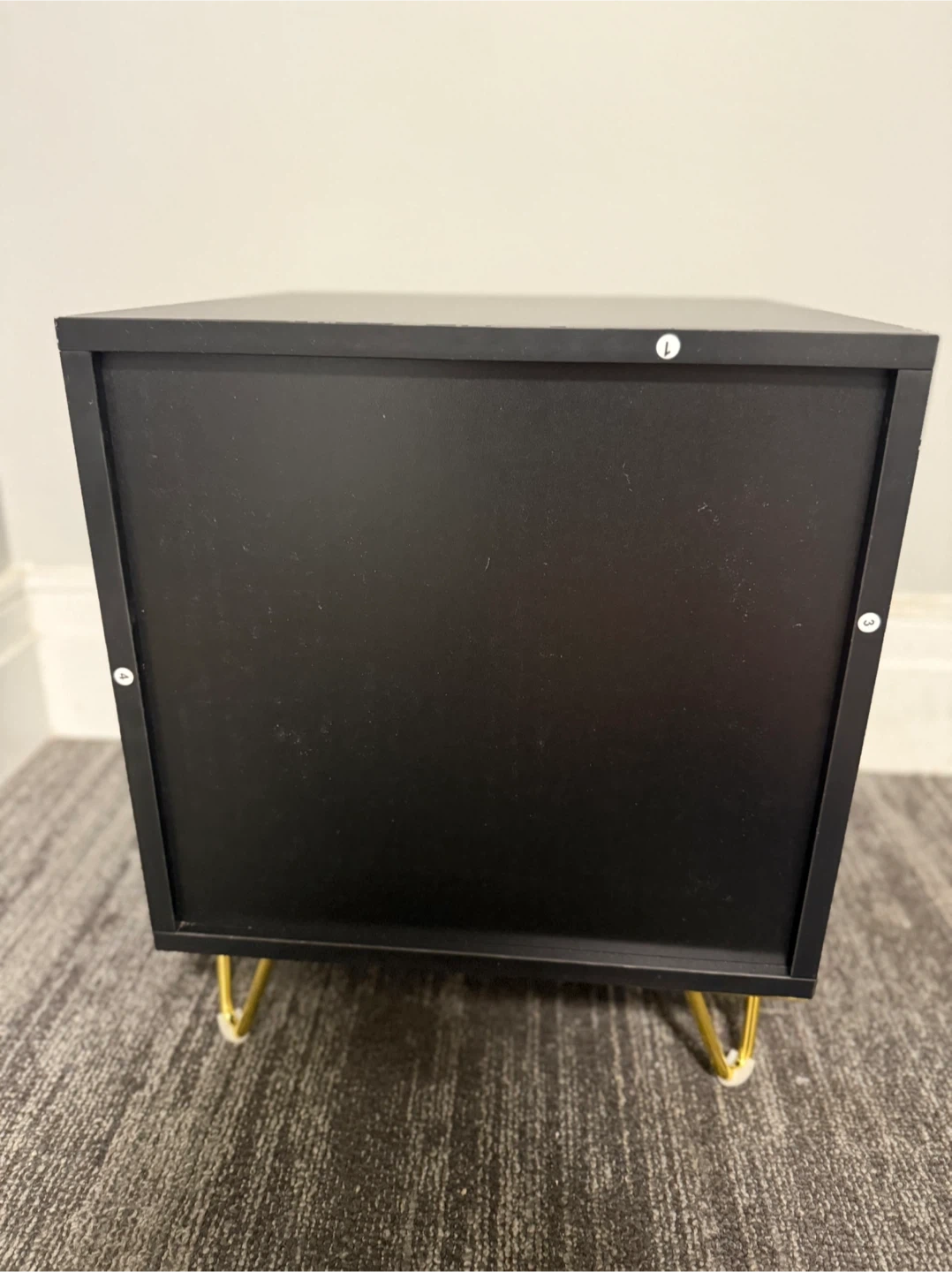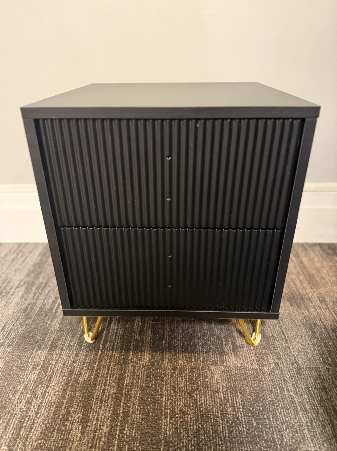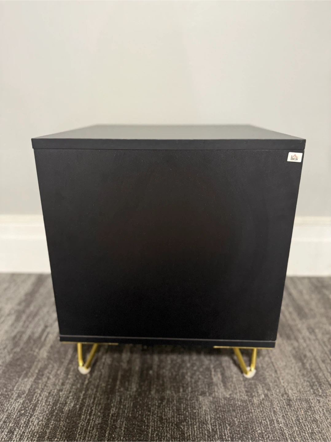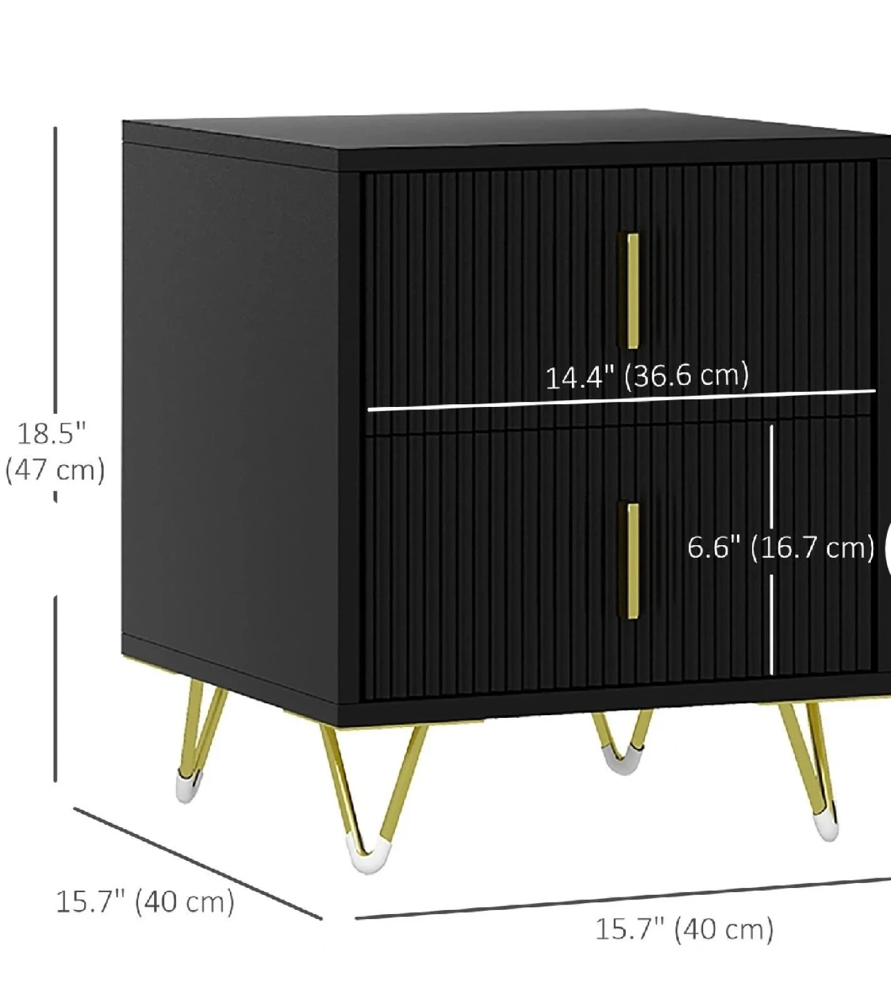 This is a new, pre-assembled HOMCOM black nightstand, featuring two drawers and stylish gold legs. I'm selling a HOMCOM nightstand with a sleek black finish and gold legs that would look great in a bedroom or living space. Since it's already assembled, it saves you the hassle of putting it together yourself!