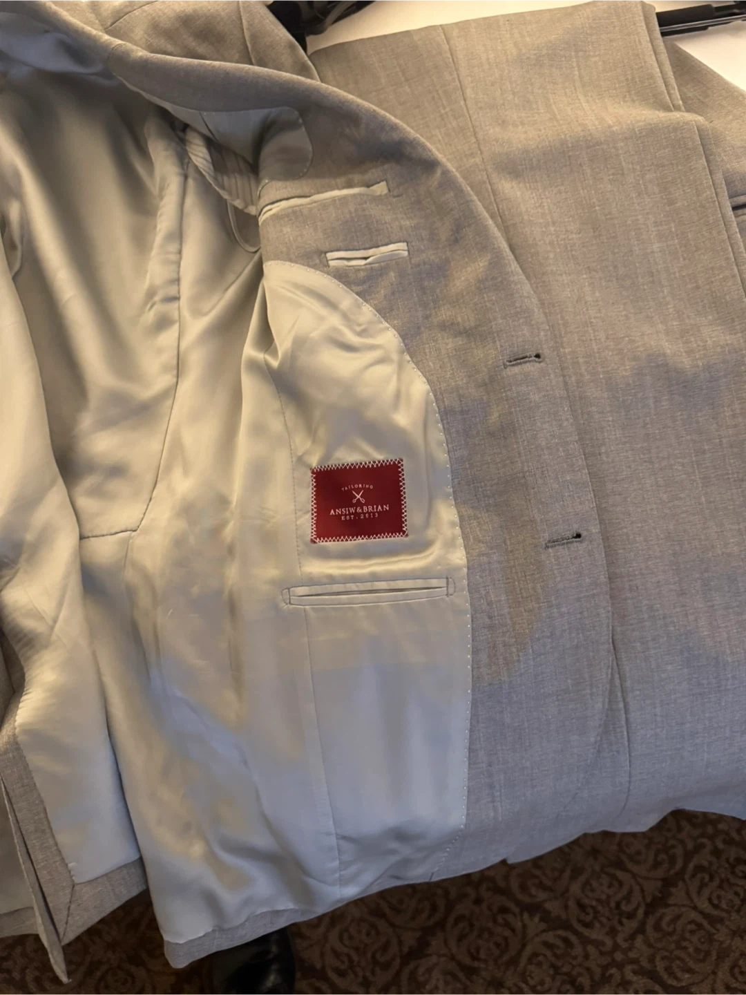 Selling a light gray suit from Ansiw& Brian. It's in great condition and ready for a new owner! Perfect for any occasion where you want to look sharp.