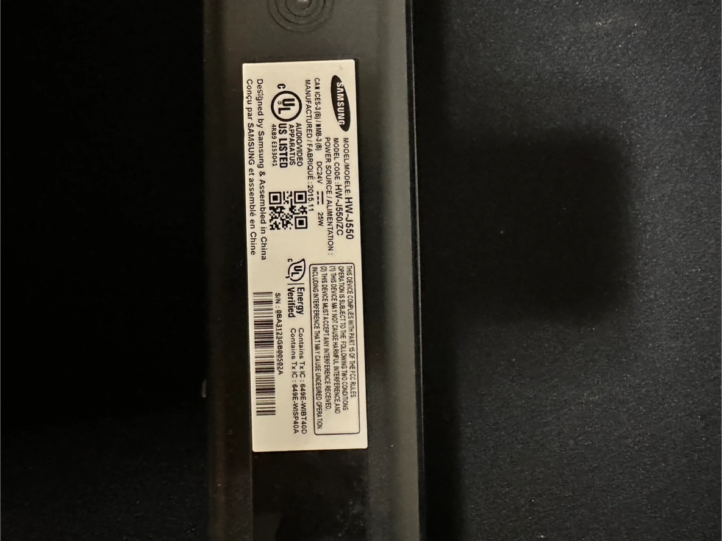 Samsung HW-J550 Soundbar and Subwoofer