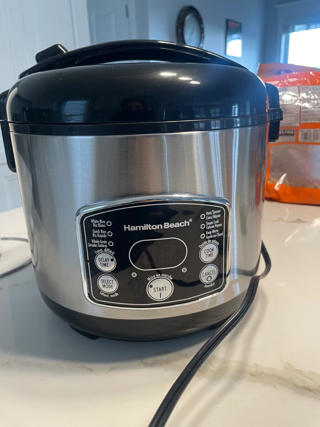 Selling a Hamilton Beach rice cooker. It's in great condition and ready to make delicious rice dishes! It has settings for white rice, brown rice, quick rice, and more. The cooker also has a keep warm function