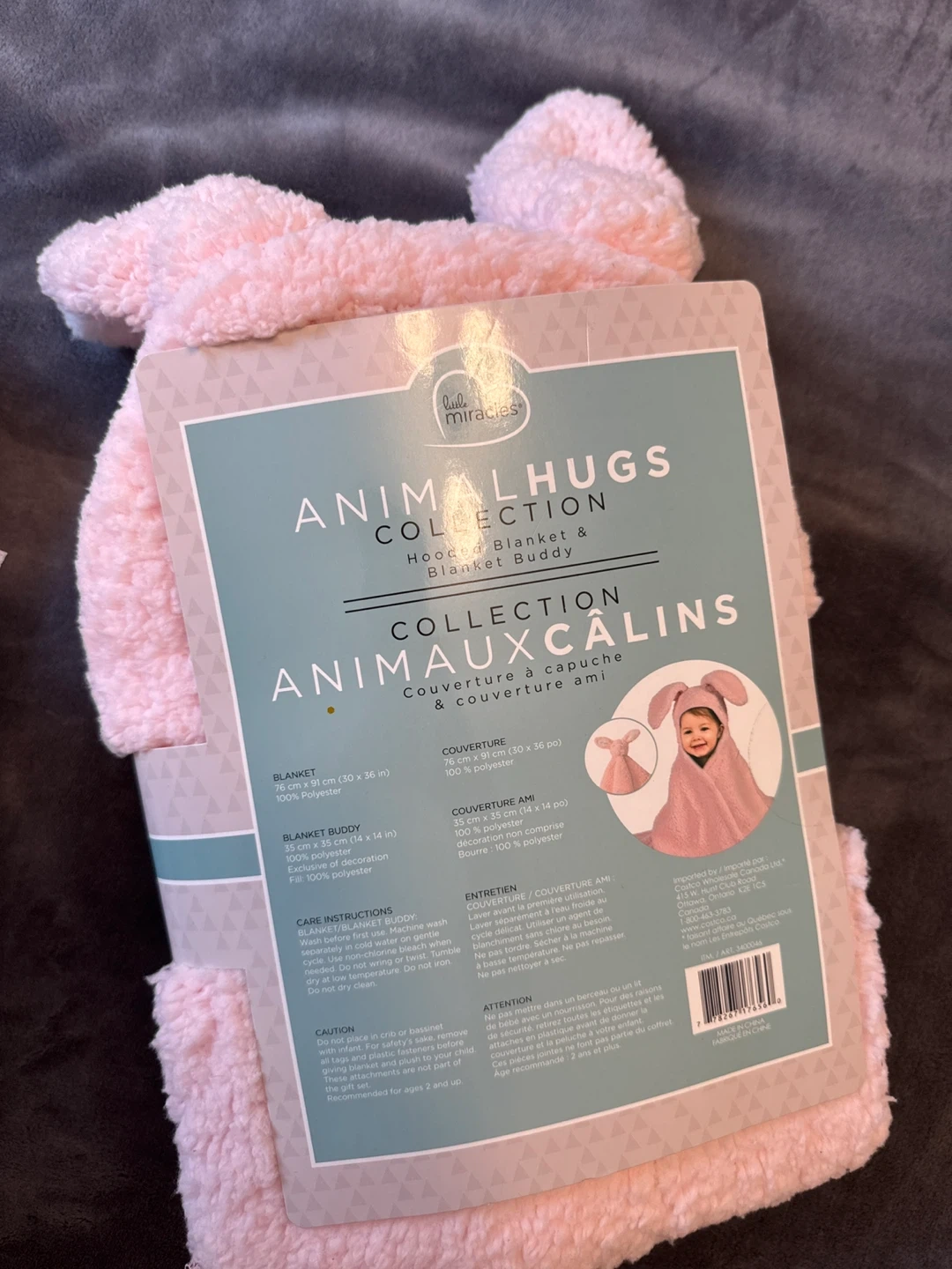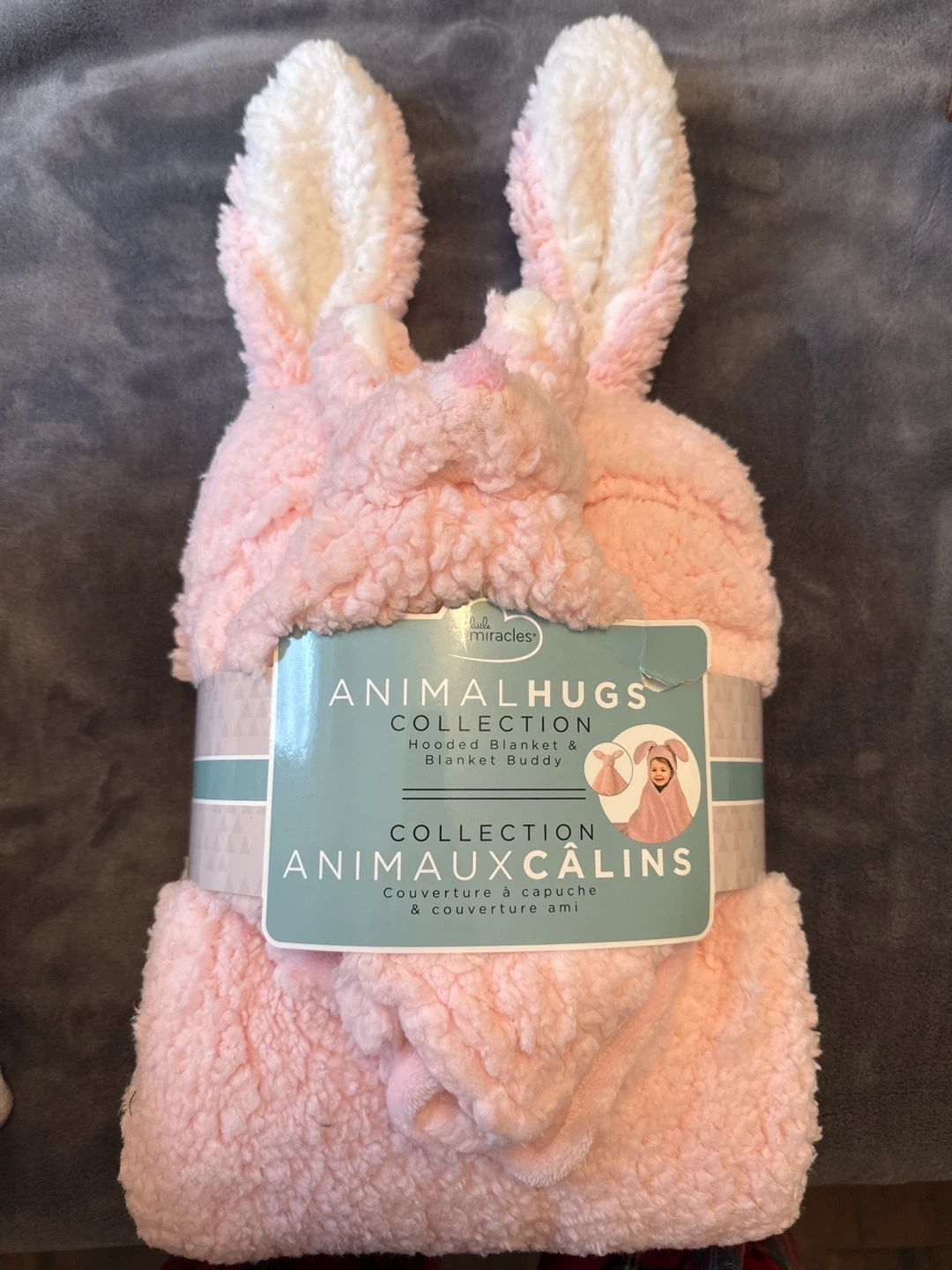 Keep your little one cozy with this new adorable Little Miracles Animal Hugs hooded blanket and blanket buddy! It's a super soft. Recommended for ages 2 and up, it's perfect for snuggling!
