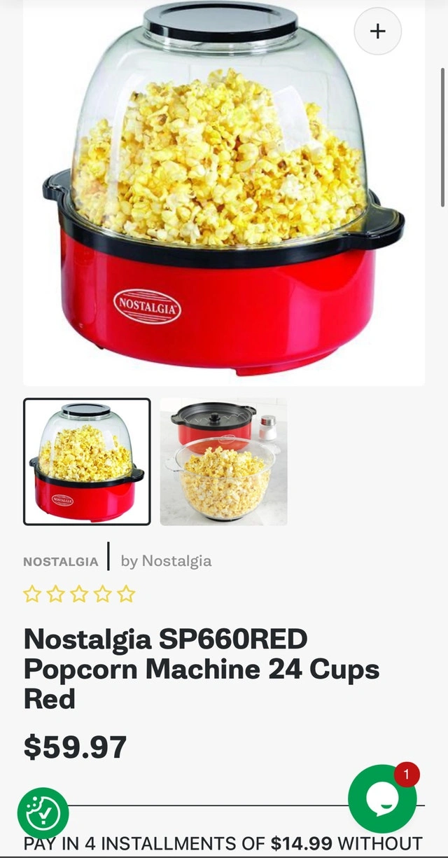 Buy & SellNostalgia SP660RED Popcorn Machine 24 CupNostalgia SP660RED Popcorn Machine 24 Cup$25Nostalgia SP660RED Popcorn Machine 24 Cup Like New, Price Is Firm For Sale By: OwnerWHERE TO MEETCheck LocationView MapSELLERJayGrimsby150 reviews0 chats·0 favorites·1 viewsSEND CHAT TO SELLERHi Jay! I’m interested in your listing.Hi Jay! I’m interested in your listing.Get the Karrot app to chatSign In to chat