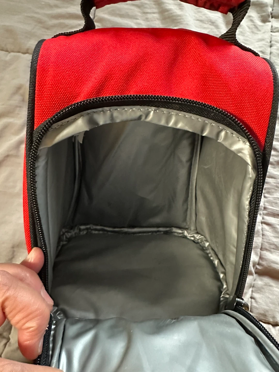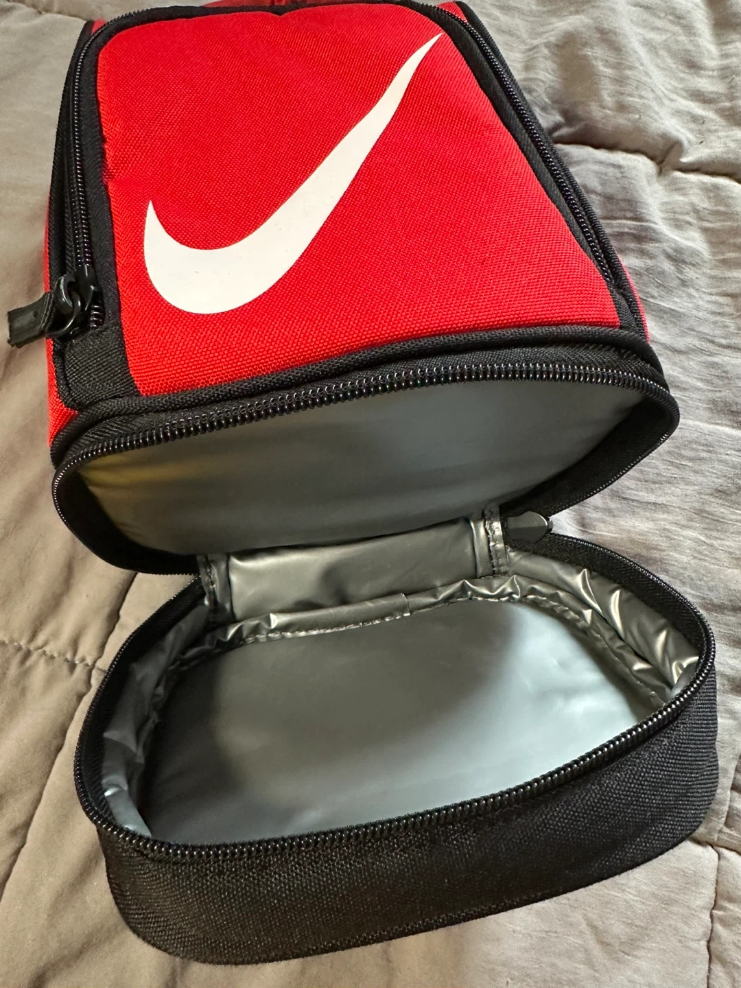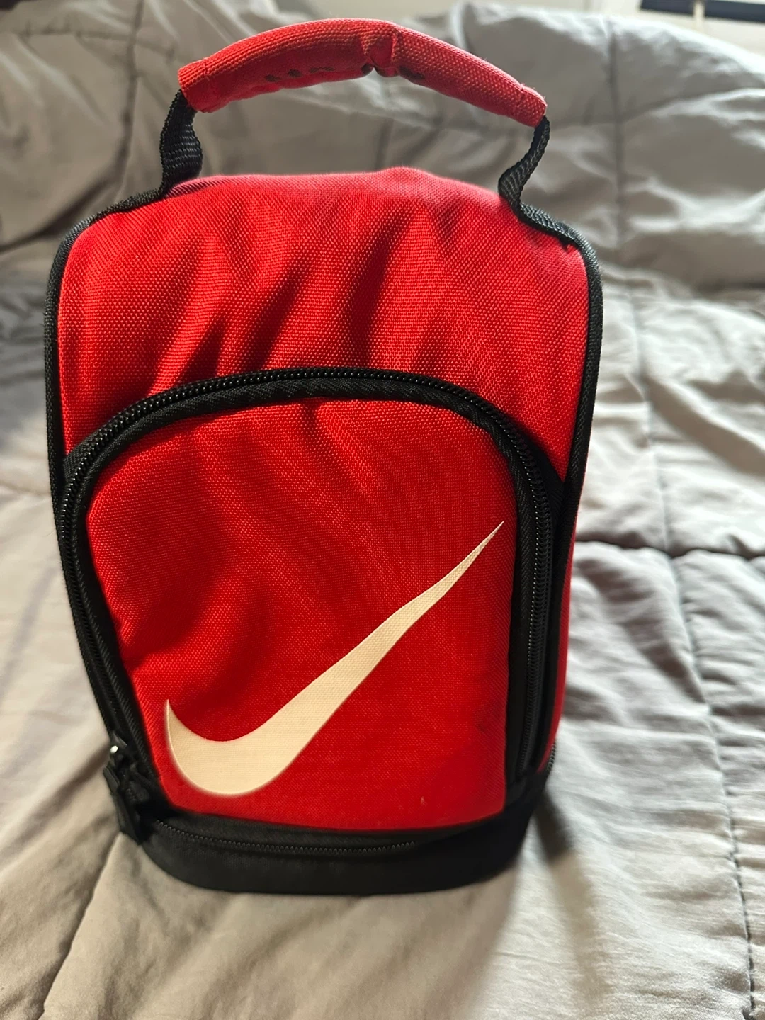 Selling a red Nike lunch bag. It's in good condition and ready for a new owner! Perfect for school or work lunches. Has a handle for easy carrying! Pick up 106 and 1st!
