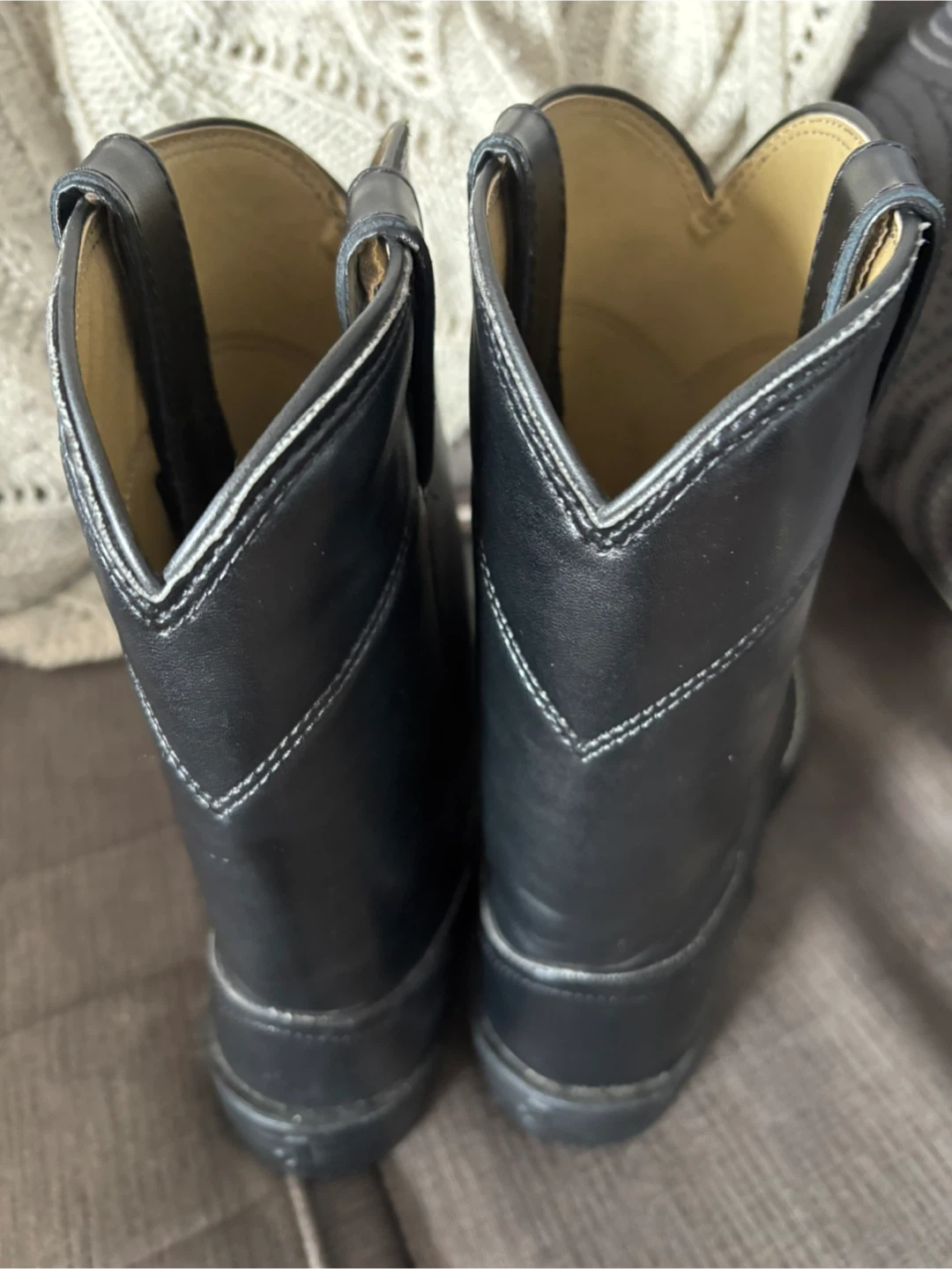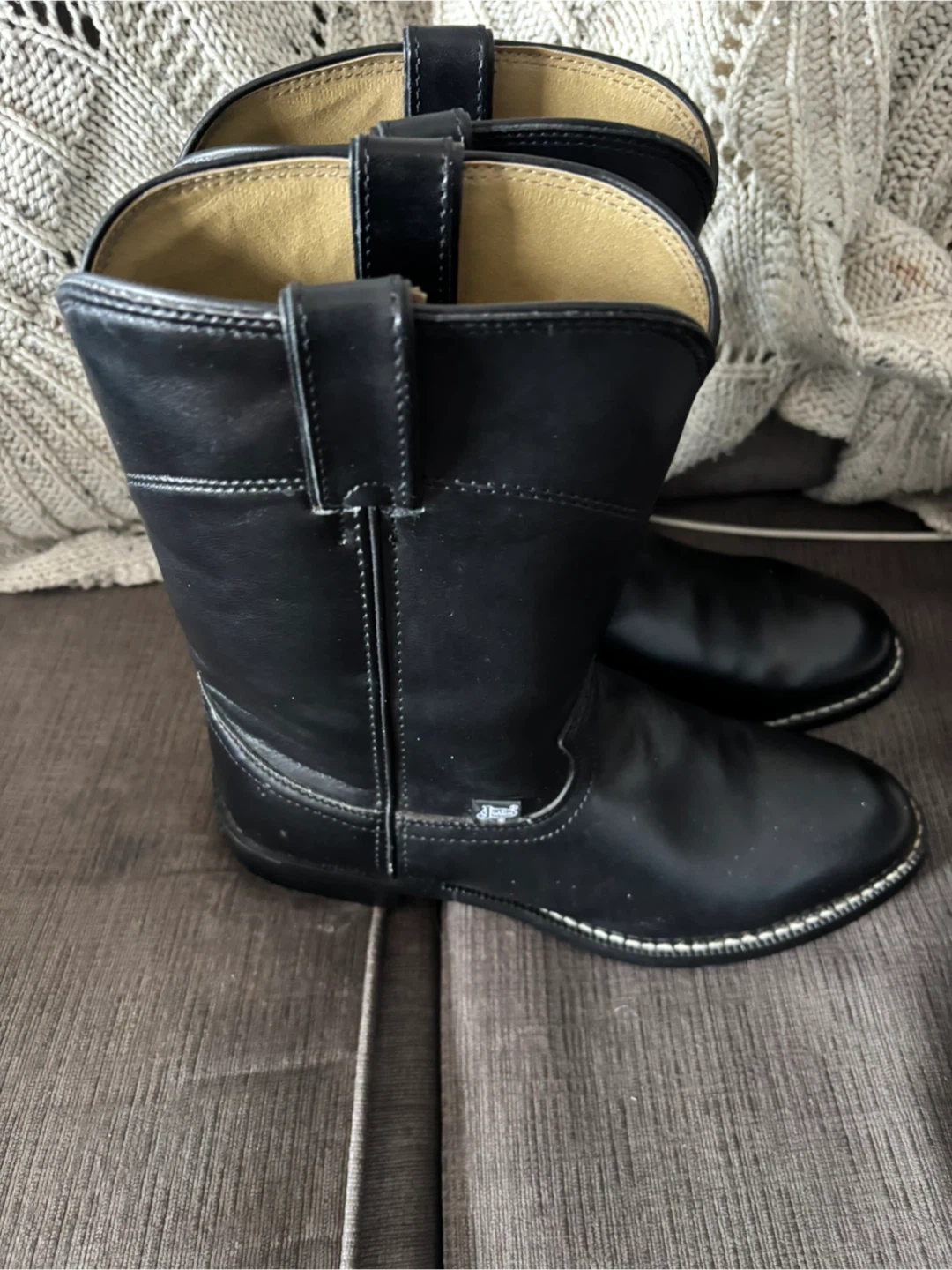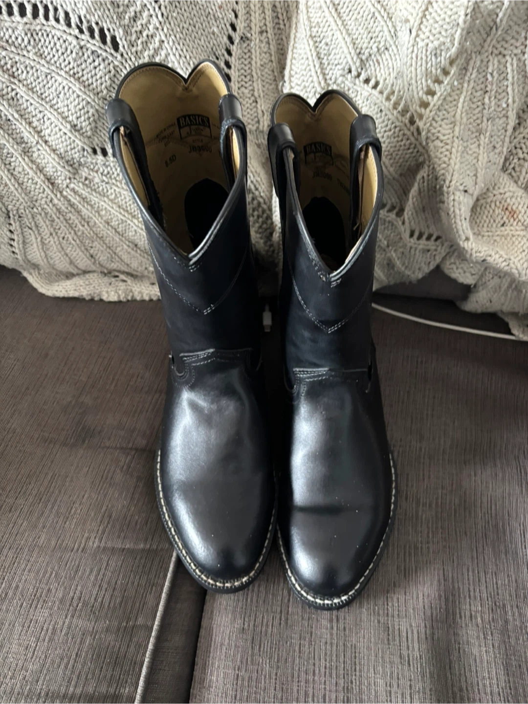 Selling a pair of Justin Basics black cowboy boots in size 8.5. These boots are in new condition and ready for a new owner! They feature a classic design and are perfect for everyday wear.
