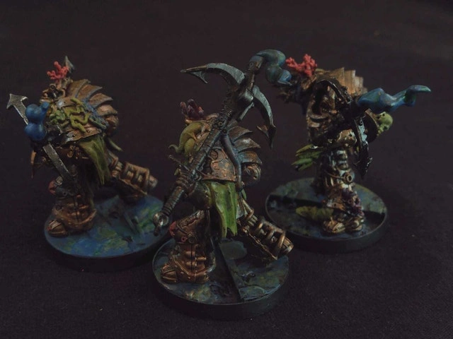 In the fathomless abyss of the deep sea, years reswell and those entombed from ancient combat stir anew in the depths, seeking avengement upon their foes. 3x well painted grimdark resin mezgike dredge Death Guard deathshroud 40k alternates.