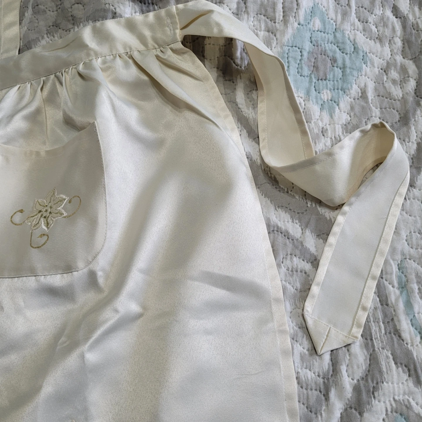 Beautiful Silky Apron - Waist up to 70" - Adult One Size - Brand New Condition- Beige & Golds - please see all pictures