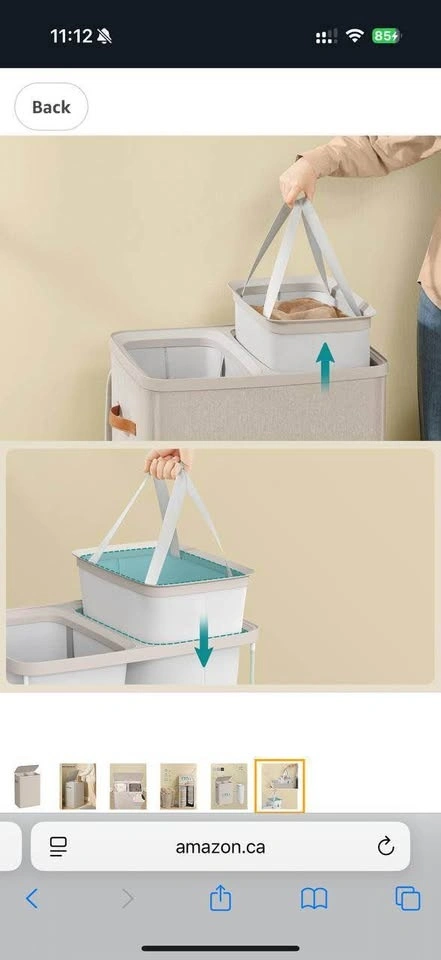 Brand new SONGMICS laundry basket, still in the original box and never assembled. Large 170 L capacity with 2 compartments makes sorting laundry easy and organized. Stylish cappuccino beige color fits perfectly in any bathroom, bedroom, or laundry room.