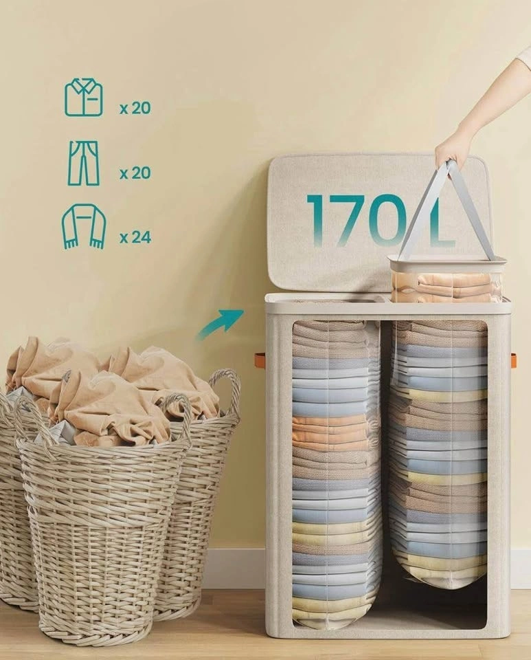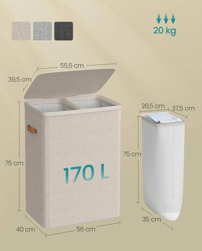 NEW SONGMICS Laundry Basket 170L | 2-Compartment Hamper