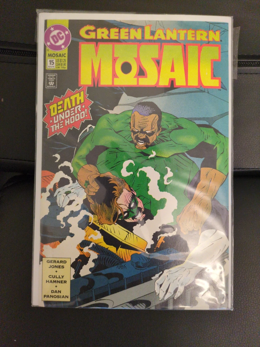Selling a Green Lantern Mosaic #15 comic book. Features Death Under the Hood! Written by Gerard Jones, Cully Hamner, and Dan Panosian. Great for any comic book collector!