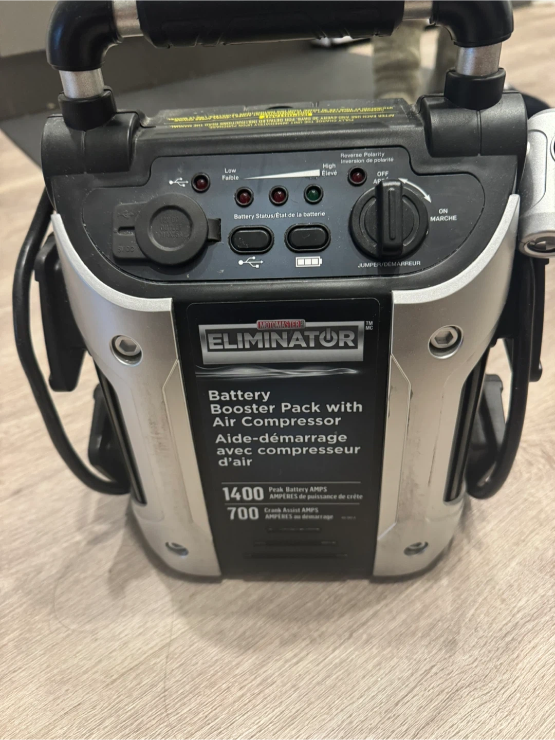 Selling a MotoMaster Eliminator Battery Booster Pack with Air Compressor. It's in great condition and ready to go! It has 1400 Peak Battery Amps and 700 Instant Start Amps. Perfect for those winter emergencies!