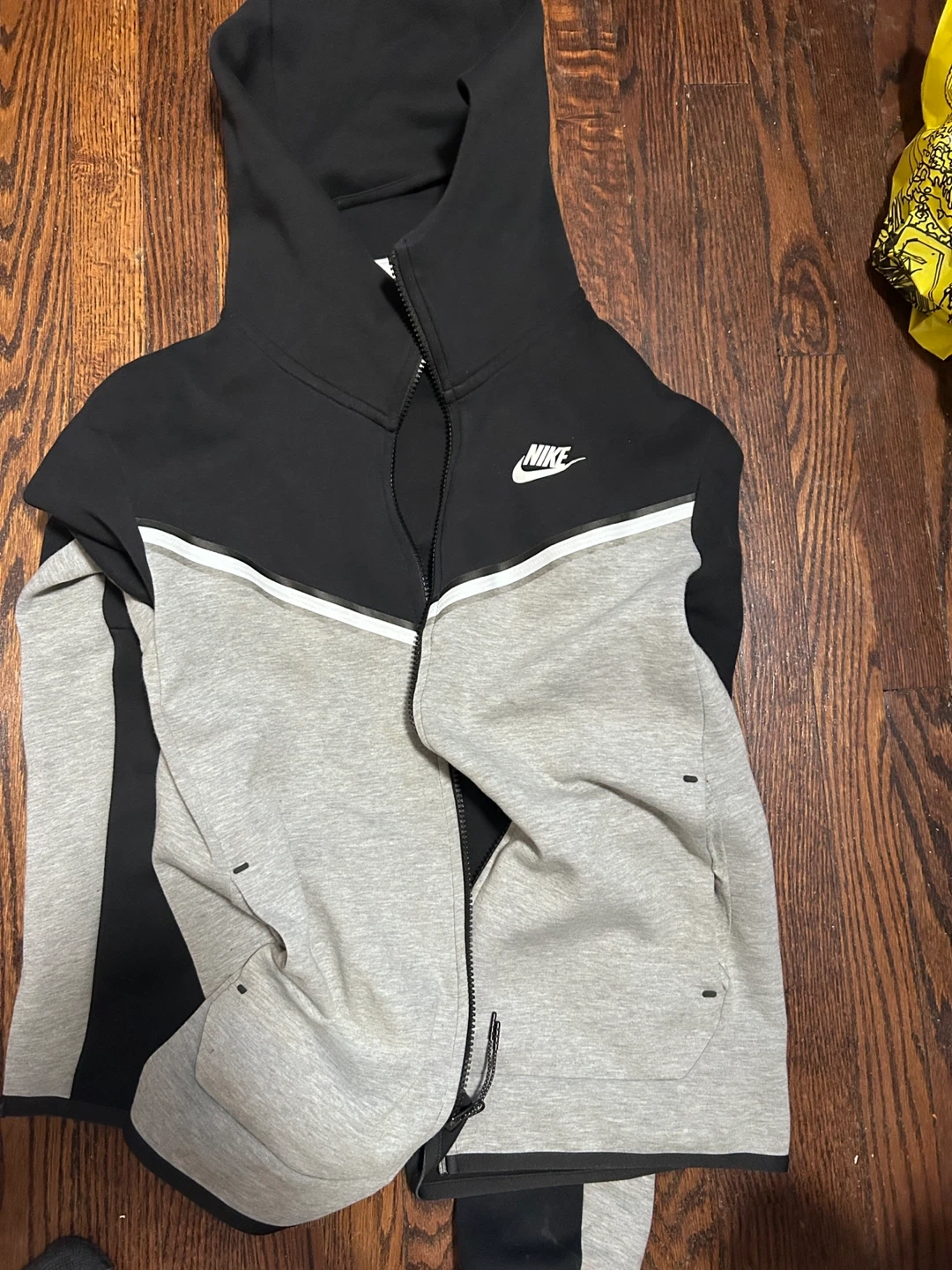Selling a Nike Tech Fleece full-zip hoodie in size large. It's in great condition and perfect for layering or wearing on its own. The hoodie features a sleek design and comfortable fit, making it a stylish and practical addition to your wardrobe