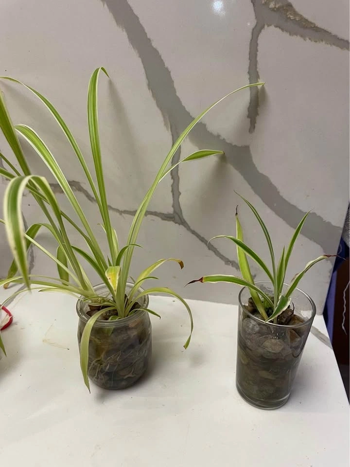 I cut a whole bunch of the spider plant babies and planted them in glass jar about a month ago. Now they are very well rooted. Easy to take care of , just add water .