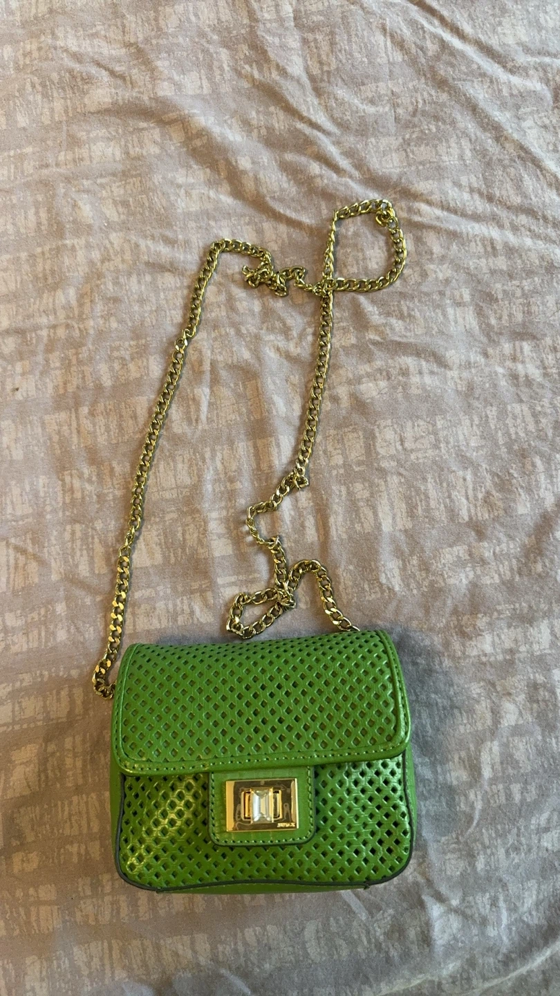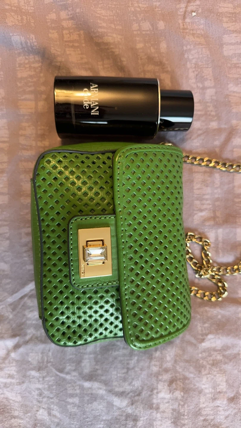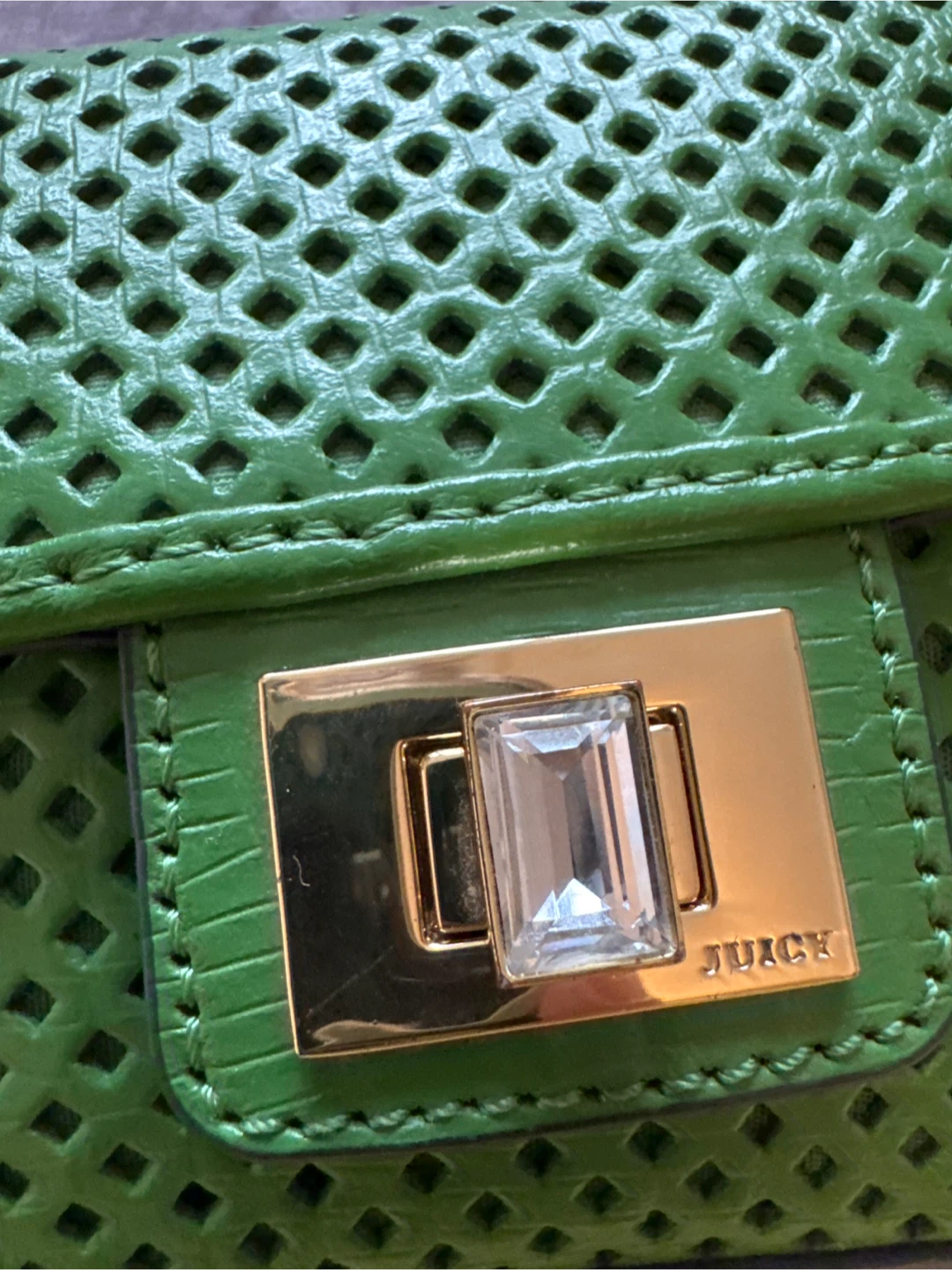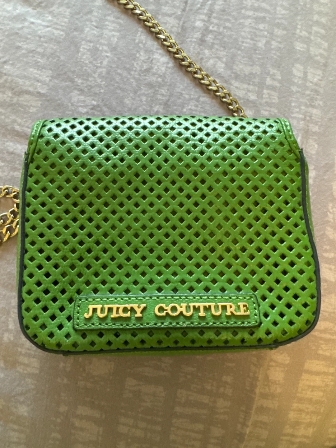 Selling a cute Juicy Couture mini crossbody bag! It's a vibrant green colour with a gold chain strap. Perfect for adding a pop of colour to any outfit