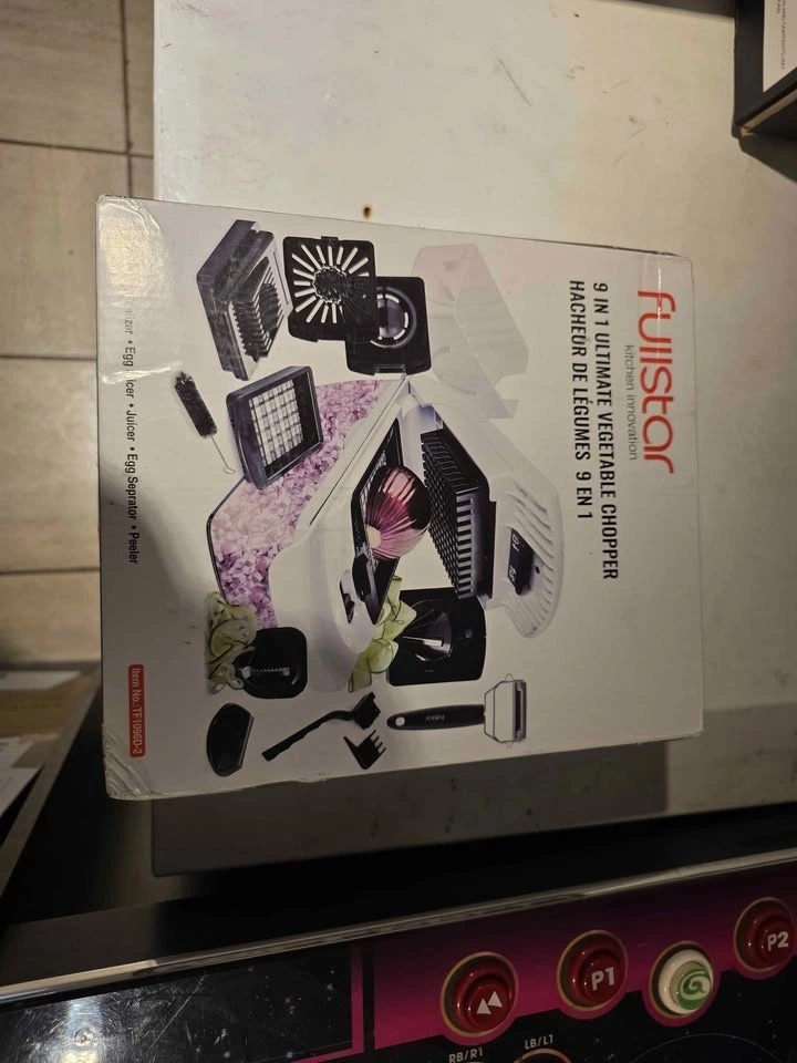 Fullstar Vegetable Chopper & Cutter – 5-cup capacity with interchangeable rust-resistant stainless steel blades. Dice, slice, and chop veggies quickly and safely with non-skid base and soft-grip handle. Dishwasher safe for easy cleanup. Perfect for fast meal prep and a great kitchen gift for home cooks.
