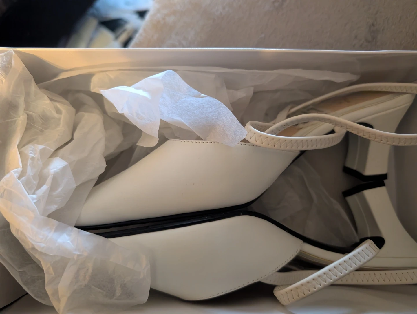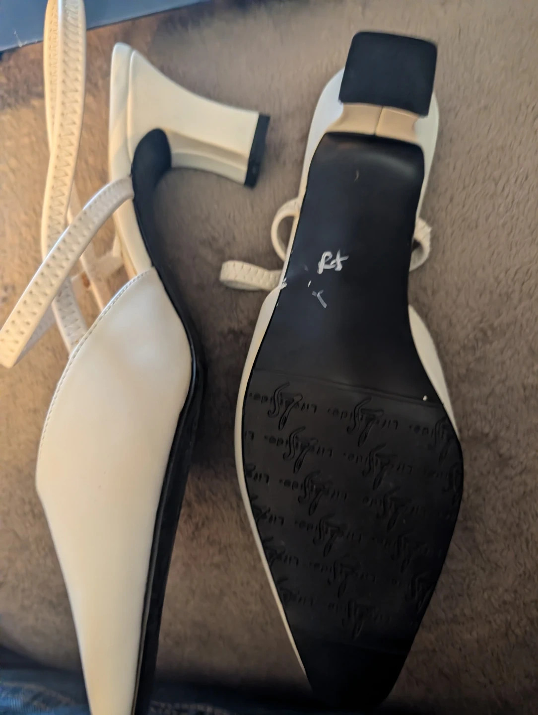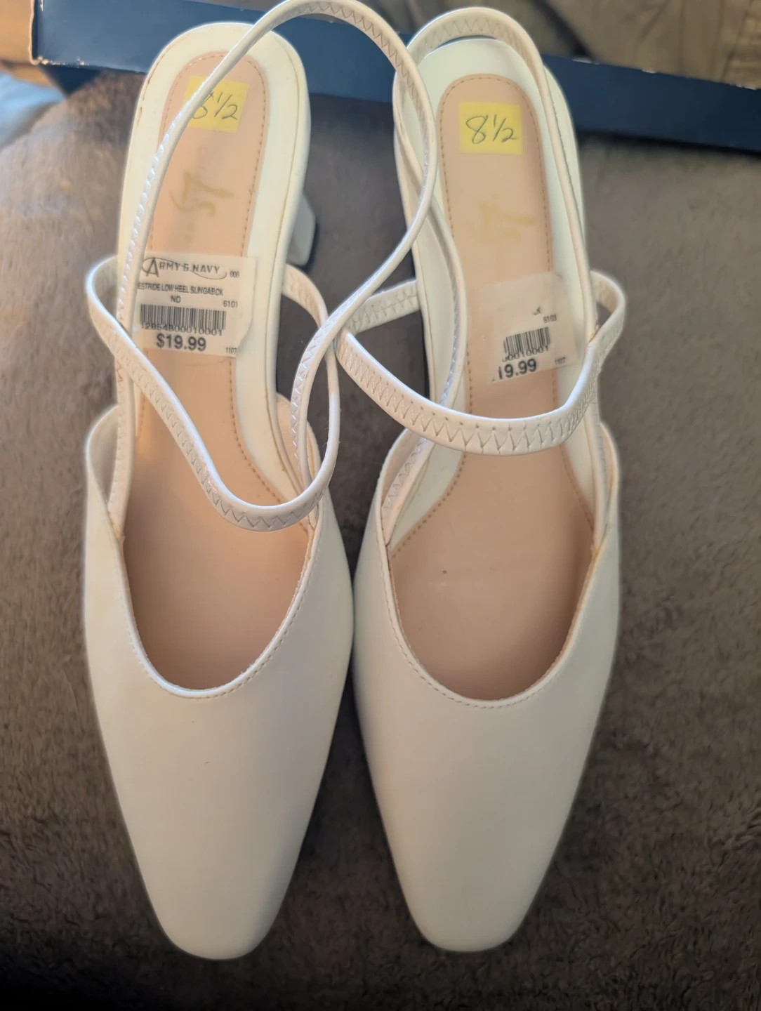 These are a pair of Karen Scott heels in size 8.5. They are white and in great condition! The original price was $60. Wife bought at the annual Army & Navy shoe sale before Covid, but never wore them, as the picture can show. Box said size 9 but shoes are tagged 8 and 1/2 so that is probably why she never wore them. She has a hundred pair like that. Don't tell her I said that. Lol.