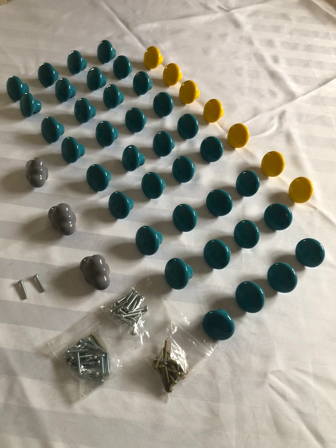 Buy & SellTeal, Yellow, Grey Cabinet Knobs with ScrewsTeal, Yellow, Grey Cabinet Knobs with Screws$1$1 each Selling a collection of cabinet knobs. There are teal, yellow, and grey cloud shaped knobs. Screws are included.ConditionNewDimensions28L x 38W millimetersWHERE TO MEETCheck LocationView MapSELLERverifiedMariaTam O'Shanter25516 reviews0 chats·2 favorites·81 viewsSEND CHAT TO SELLERHi Maria! I’m interested in your listing.Hi Maria! I’m interested in your listing.Get the Karrot app to chatSign In to chat