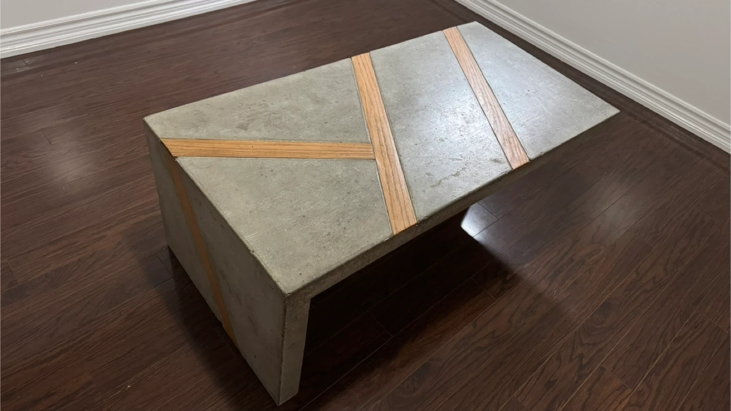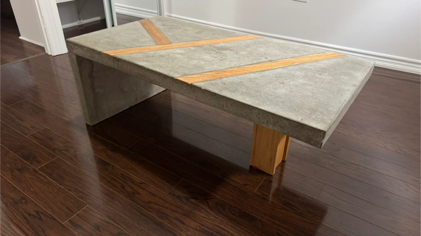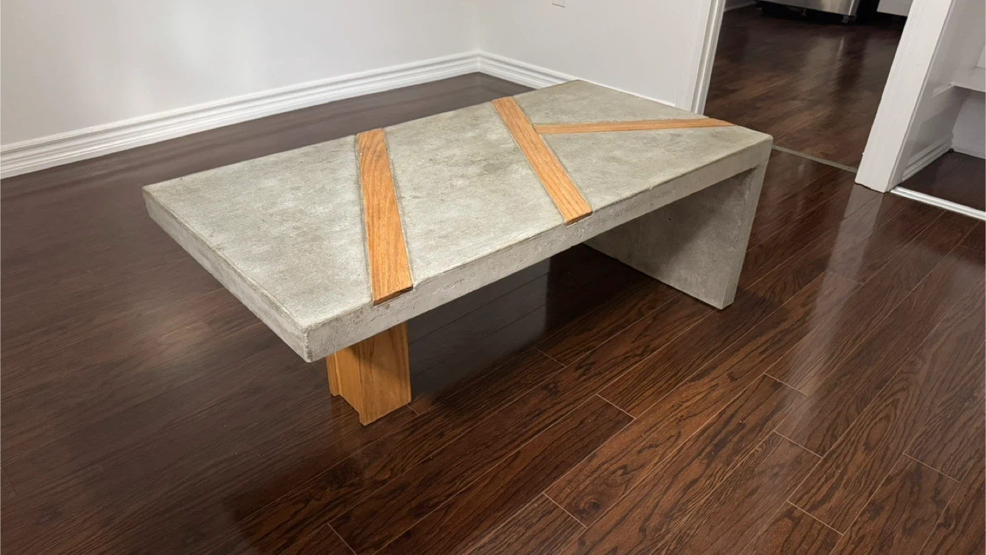 Selling a unique coffee table made of concrete with wood accents. It's in great condition and would be a stylish addition to any living room! Custom built with oak inlay, really heavy as it’s real concrete.