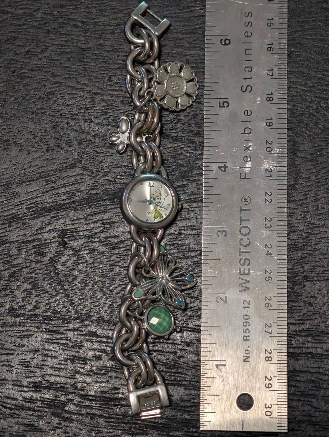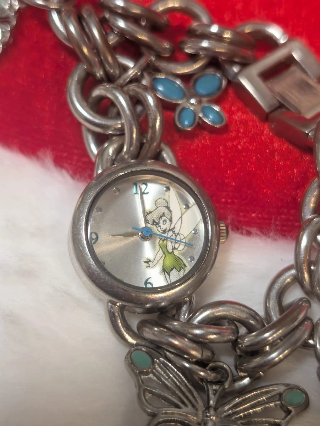 Vintage Disney Tinker Bell Silver-Tone Charm Bracelet Watch