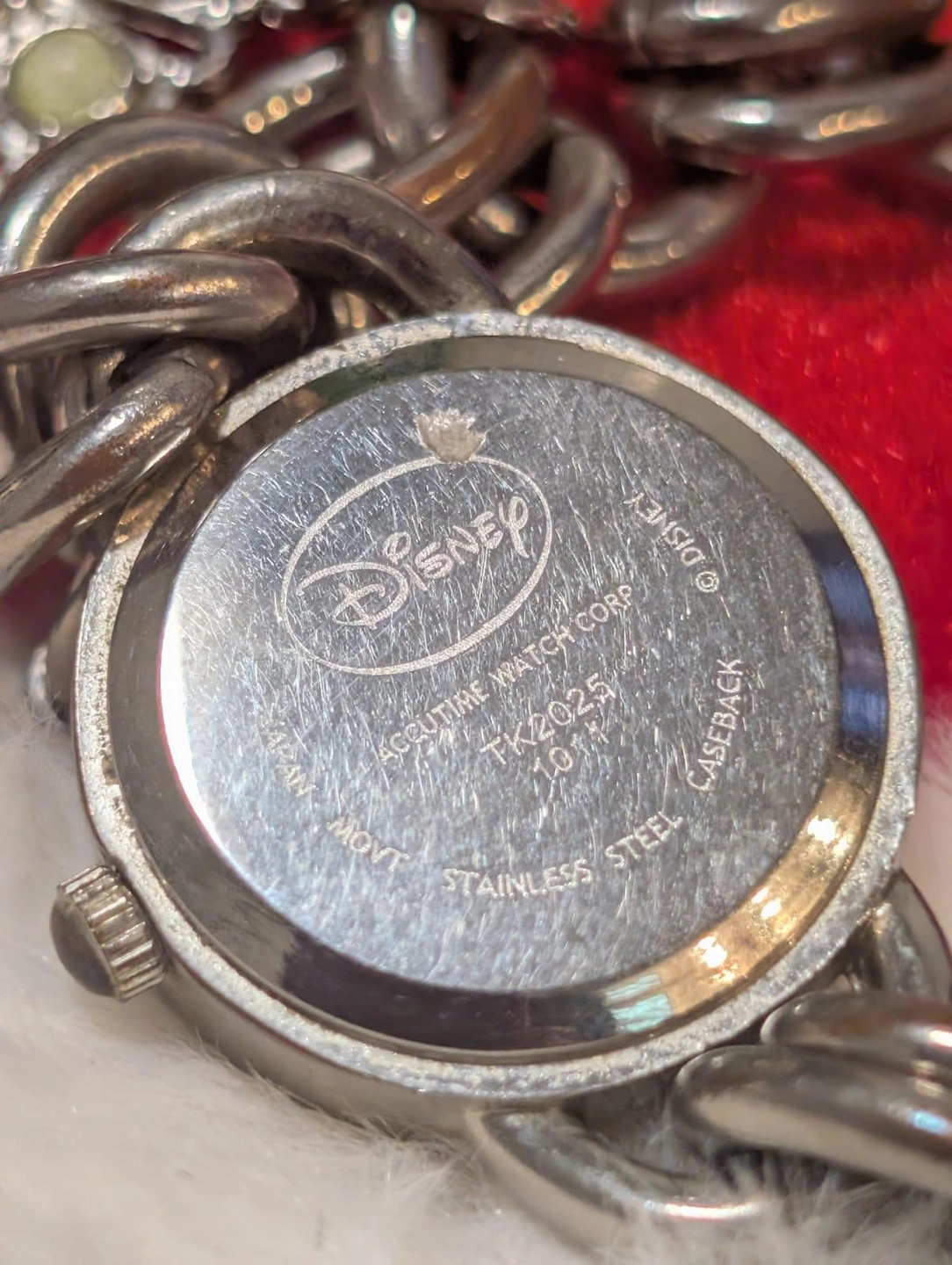 Add some pixie dust to your wrist! This beautiful Disney Tinker Bell charm bracelet watch combines the whimsy of Peter Pan’s favorite fairy with a stylish, chunky chain aesthetic. It’s a perfect accessory for Disney fans, collectors, or anyone who loves unique jewelry.