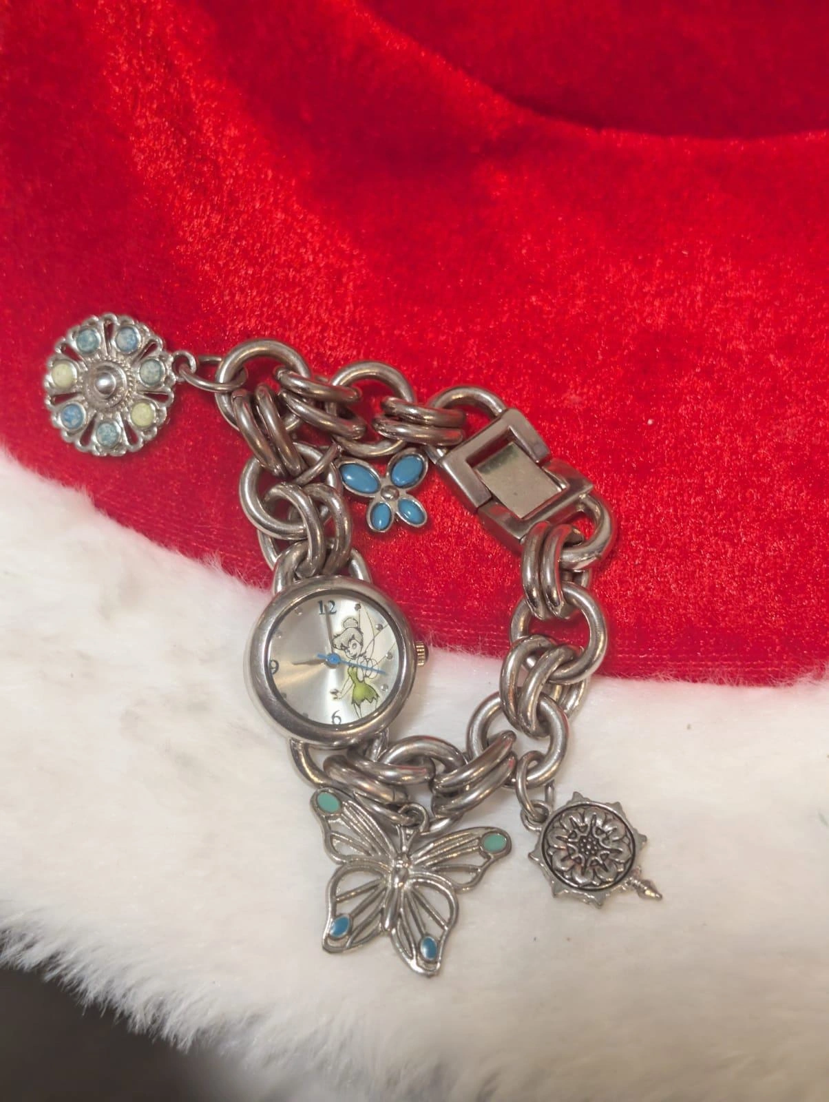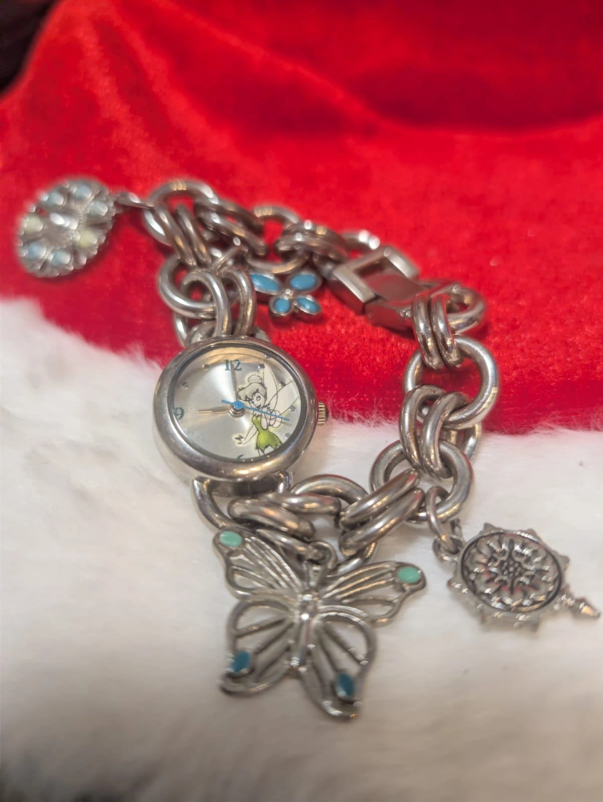 Vintage Disney Tinker Bell Silver-Tone Charm Bracelet Watch