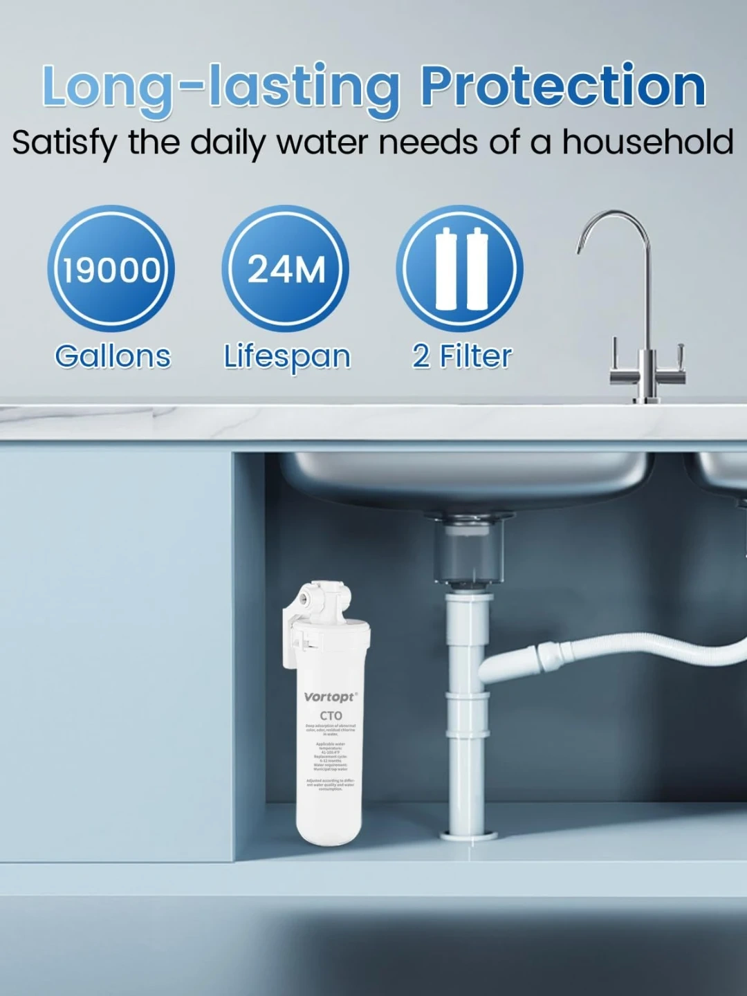 I'm selling a brand new Vortopt under sink water filter system! It's still in its original box and includes all the components. This system provides long-lasting protection and satisfies the daily water needs of a household. It can filter up to 19,000 gallons and has a lifespan of 24 months. It also efficiently filters out rust, lead, sediment, chlorine, bad odour and bad taste, while retaining useful minerals in the water