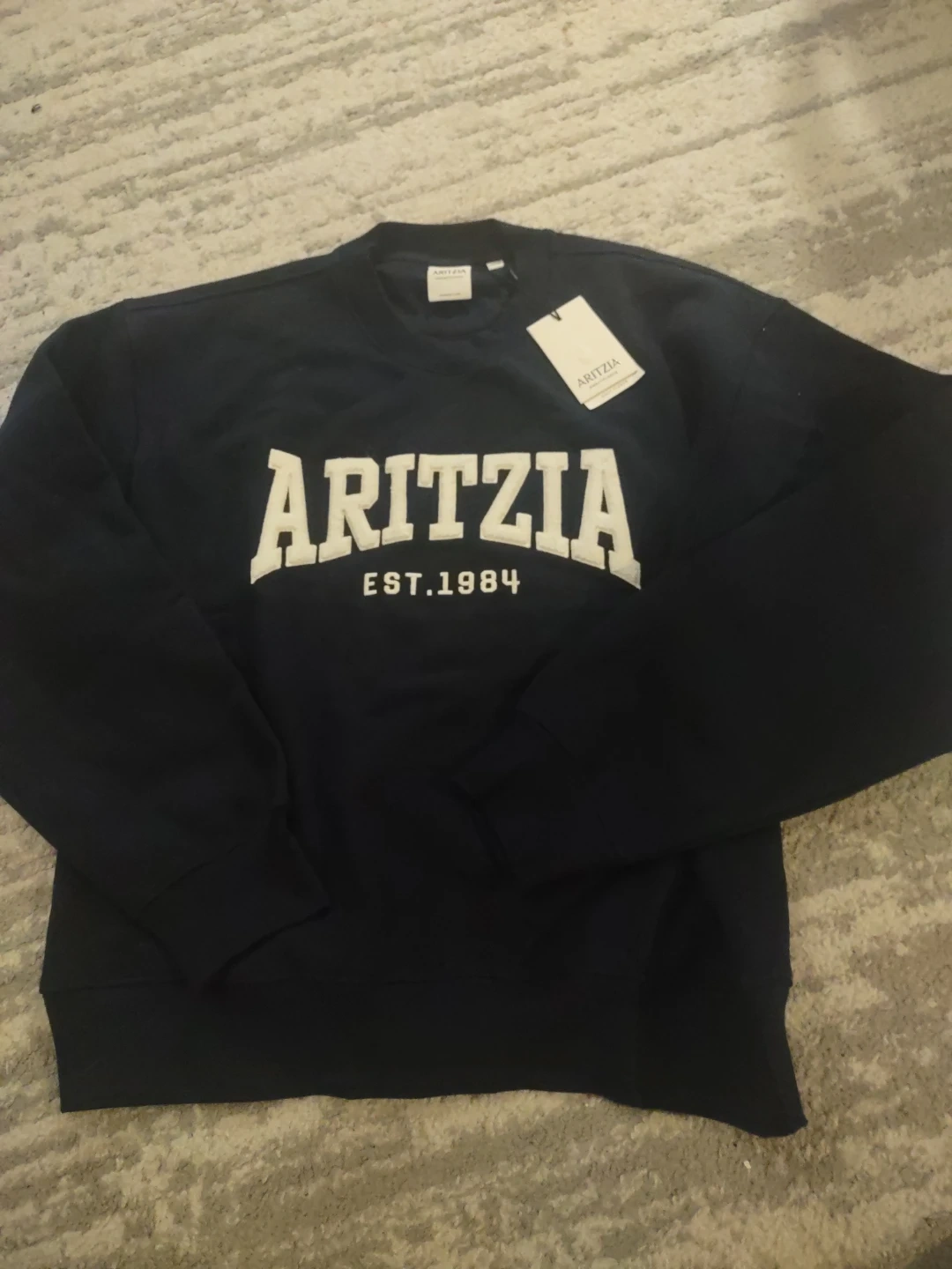 Selling a brand new Aritzia Sweatfleece Perfect Crew in size medium! It's a super comfy sweatshirt with the Aritzia logo on the front. The colour is navy blue. originally 78 plus tax. brand new woth tags!