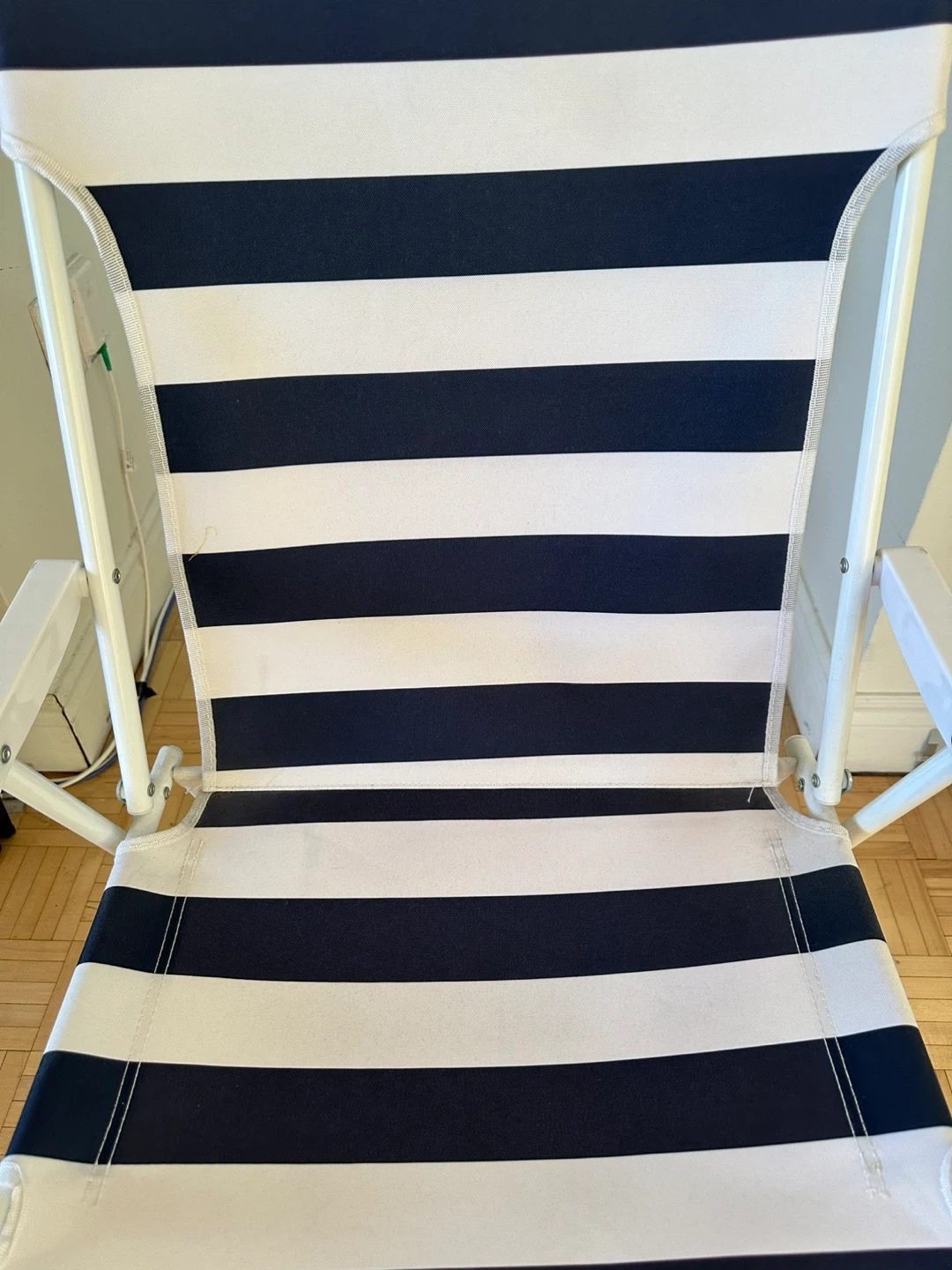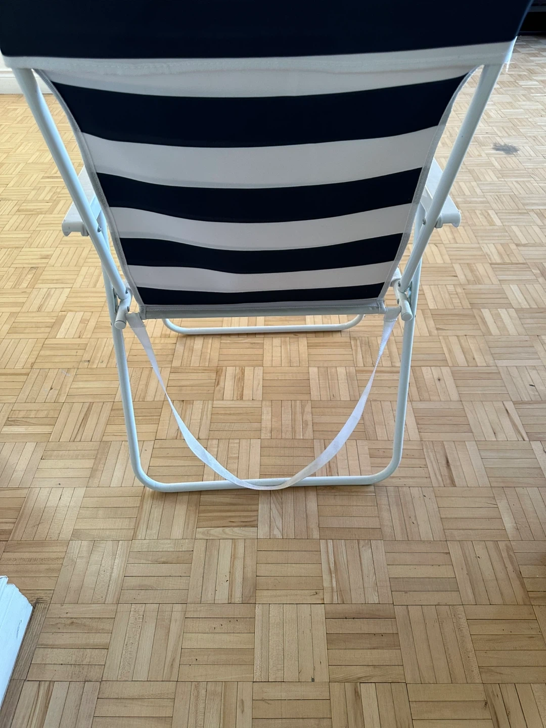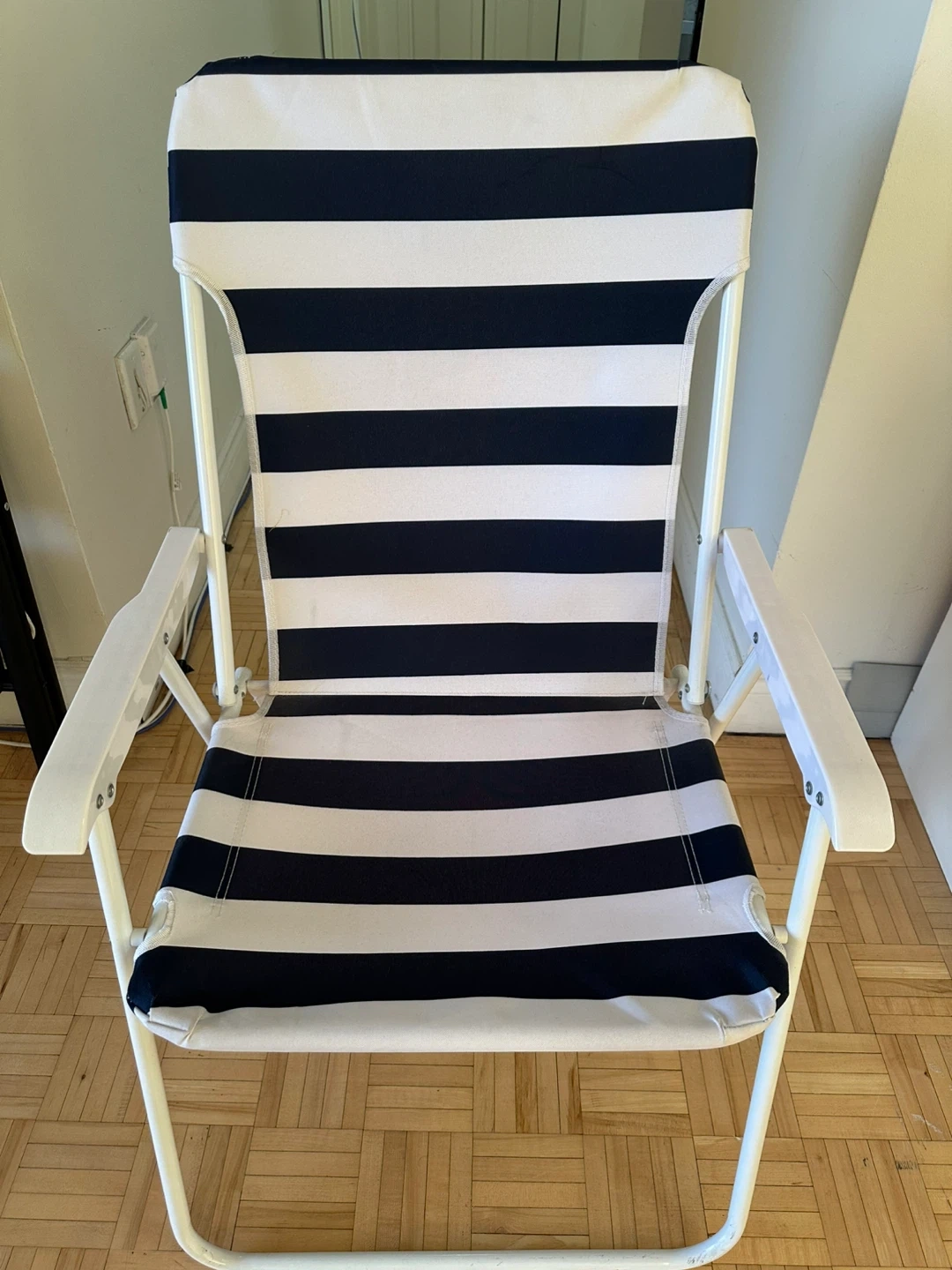 Buy & SellFolding ChairFolding Chair$15The chair is lightweight and easy to carry, making it great for travel and storage. The frame is white, and the fabric is a navy and white stripe.WHERE TO MEETFranklin st SView MapSELLERPariFairway Station615 reviews0 chats·0 favorites·5 viewsSEND CHAT TO SELLERHi Pari! I’m interested in your listing.Hi Pari! I’m interested in your listing.Get the Karrot app to chatSign In to chat